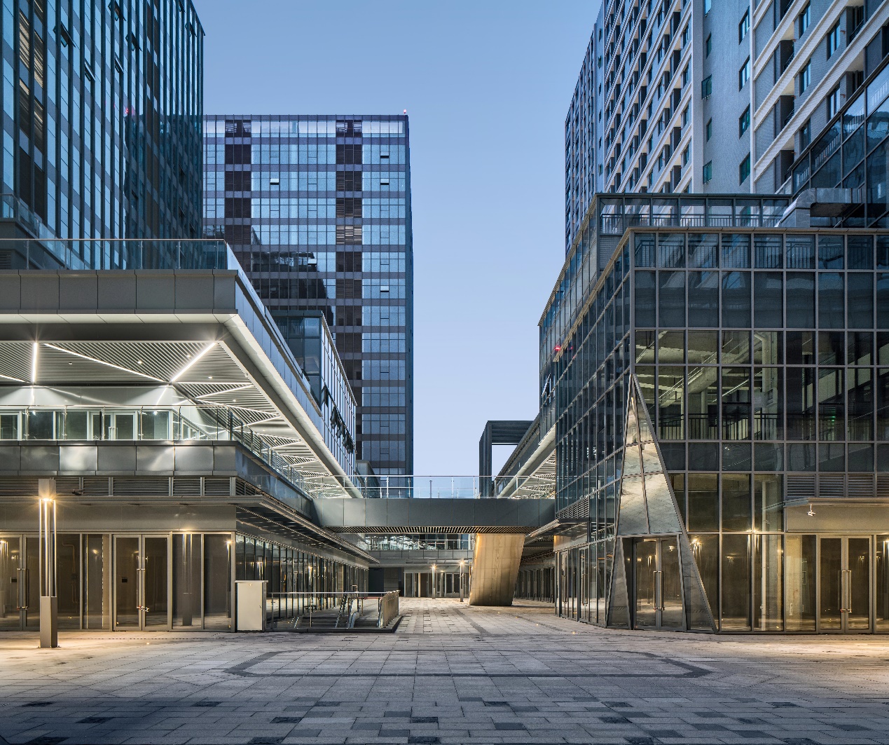 城市化的建筑,模糊了城市與建筑之間的界限,在建筑內(nèi)部打造室外空間,形成一個(gè)開(kāi)放式的TOD商務(wù)生態(tài)圈。沿著主要街道,蔓延出眾多支路,形成網(wǎng)狀結(jié)構(gòu)。與周邊無(wú)縫對(duì)接的地鐵站、街角、醫(yī)院形成規(guī)劃序列,體現(xiàn)建筑所具有的開(kāi)放性與整體性,進(jìn)而影響帶動(dòng)區(qū)域的發(fā)展,保證區(qū)域價(jià)值及形象的全面提升。