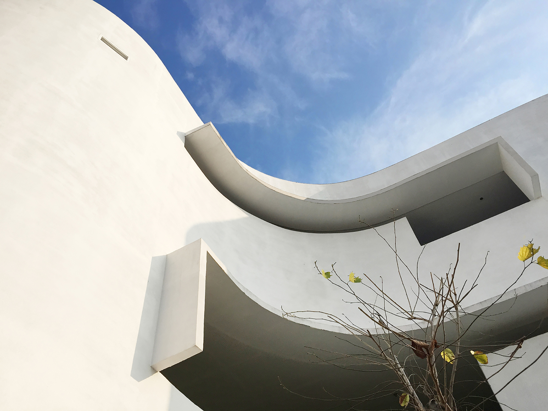 不同尺度的洞口隨陽(yáng)光照射角度的不同也為走廊空間塑造了生動(dòng)的光影效果,無(wú)論從室內(nèi)還是室外都帶給人豐富的視覺(jué)體驗(yàn)。