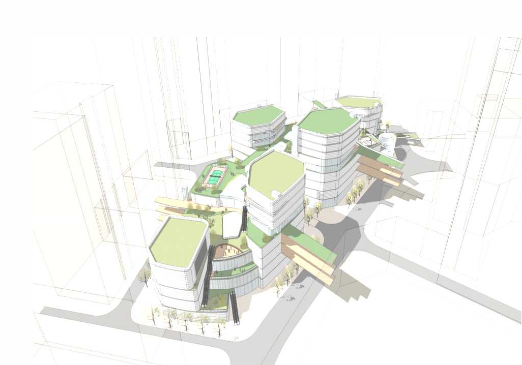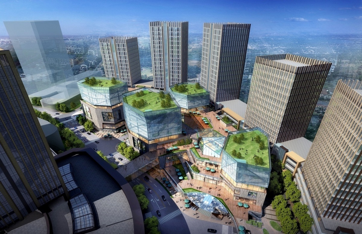 項目共分為四期,由一條主動線貫穿于商業(yè)體之間,形成道路與建筑體的共存,產生暢通的車流與人流。整體布局為公園式商業(yè),四周塔樓圍繞,形成圍合的肌理關系,連續(xù)的空間,起伏的造型,變化的細部,視覺效果驚喜不斷。為了實現(xiàn)可持續(xù)發(fā)展,我們使廣泛的公共設施區(qū)域彼此緊密聯(lián)系,且明確定義和組織,遍布在功能豐富的戶外空間周圍。