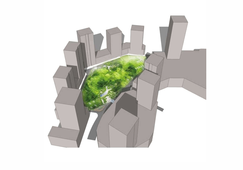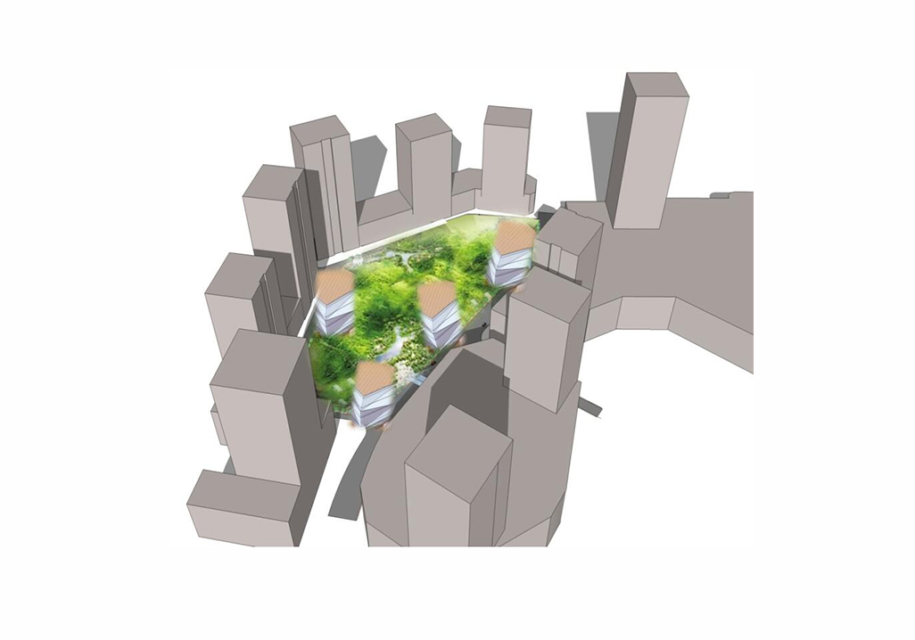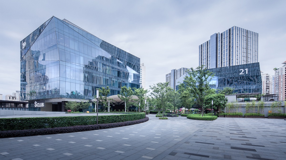 四個冰晶盒子將商業(yè)設備設置在屋頂,從高處俯瞰無一不是一處城中花園。裙樓屋頂花園的設計,不僅美化了整個商業(yè)立面形象,還形成了第五個立面。