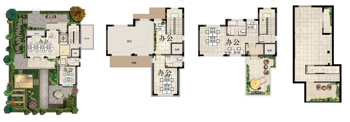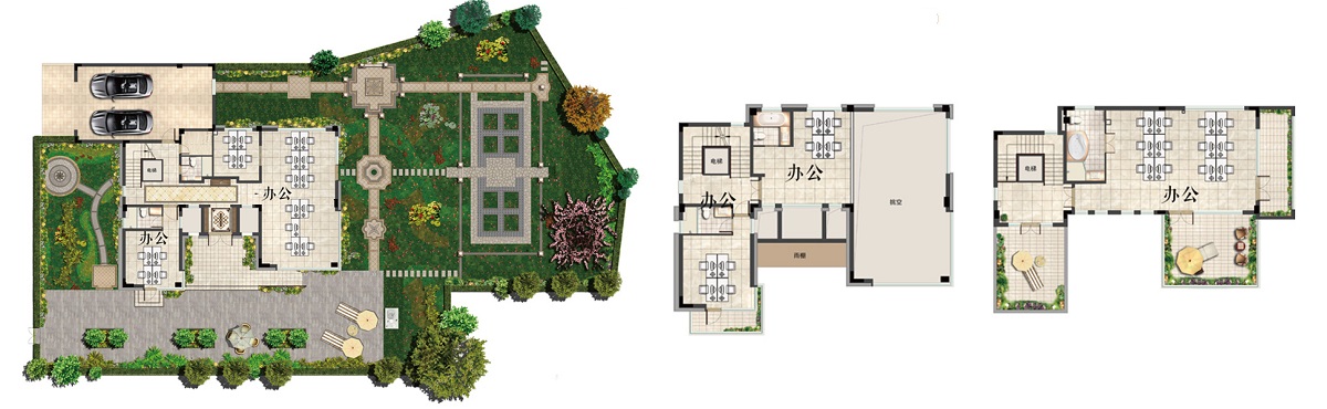 采用傳統(tǒng)庭院圍合式景觀園林布局,空間的現(xiàn)代形式表現(xiàn)傳統(tǒng)園林的“意境美”以及其“有限到無限”的空間意識都體現(xiàn)在中國傳統(tǒng)園林空間層次的豐富性上。因而,建筑師通過傳統(tǒng)園林院落空間的分析,從而增加院落空間的層次。將人與人的關(guān)系凝結(jié)在于庭院之中,讓空間存在的意義變得智慧和質(zhì)感,真正實現(xiàn)“居有界,心無界”的境界。
