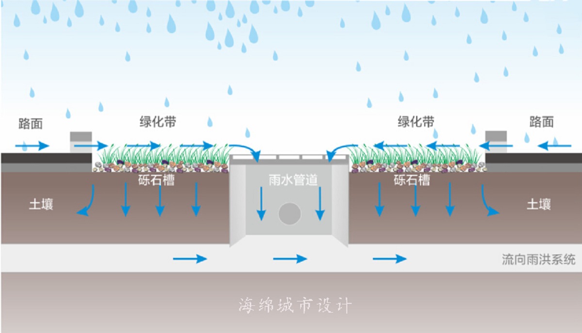 海綿城市倡導(dǎo)充分利用和挖掘城市中各個元素的生態(tài)功能實現(xiàn)城市降雨徑流的自然積存、自然滲透、自然凈化,強調(diào)綜合采取“滲、滯、蓄、凈、用、排”等措施,通過“源頭減排—過程控制—系統(tǒng)治理”的技術(shù)路線實現(xiàn)城市的可持續(xù)綠色發(fā)展。