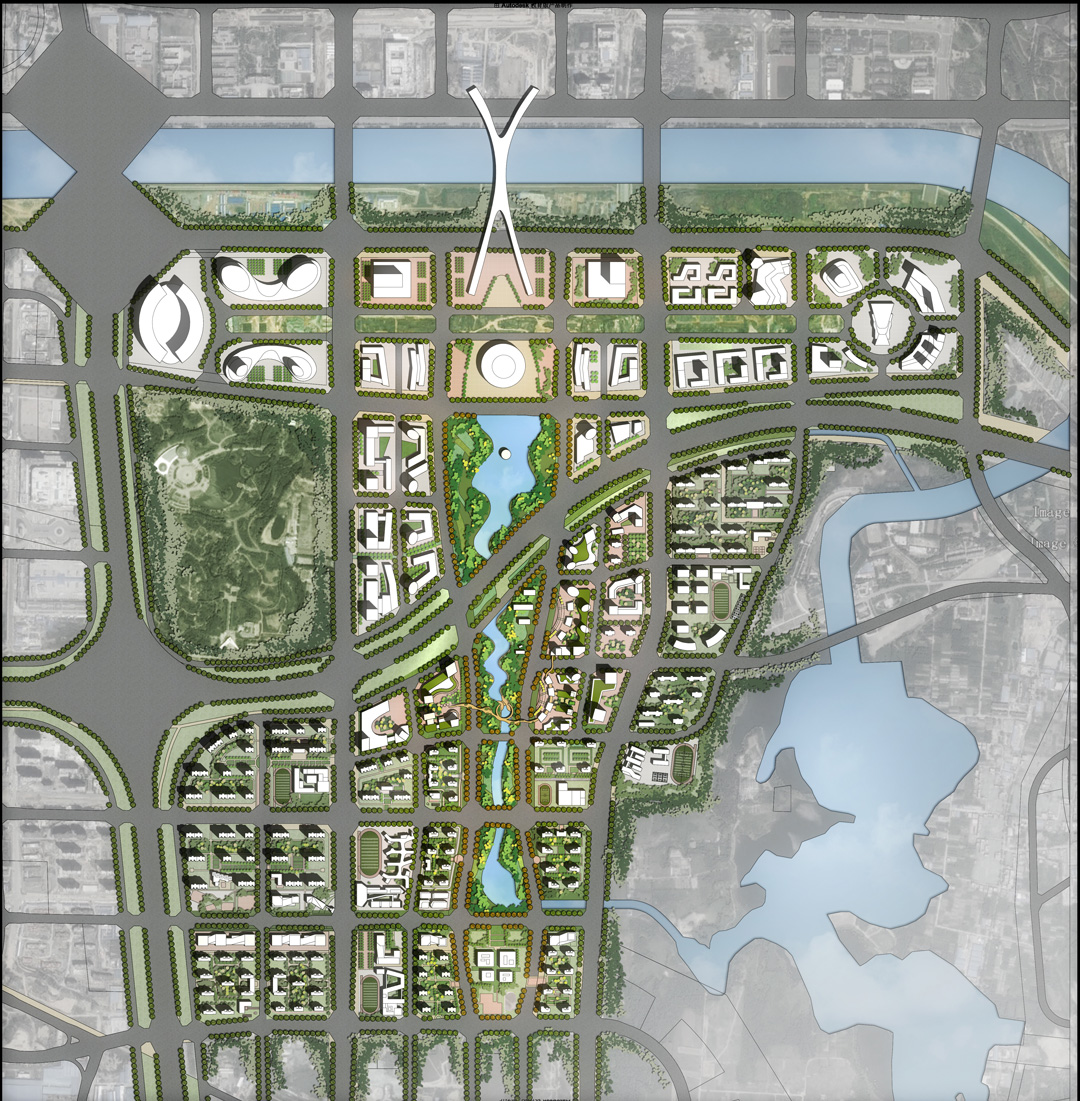 項目所在地位于鄭州文化服務中心區(qū)南側,毗鄰鄭州植物園和濕地公園,規(guī)劃面積約455畝,致力于打造以多功能綜合文化產(chǎn)業(yè)園區(qū)為主的特色文化商業(yè)商務集群,利用項目基地原有的良好景觀資源,以九曲蓮湖為核心綠源,向兩側商業(yè)用地滲透。文創(chuàng)產(chǎn)業(yè)園的商業(yè)形式與城市北側的大型文化場館形成對比,從城市形態(tài)建筑體量上形成向南側生活住區(qū)的過度。