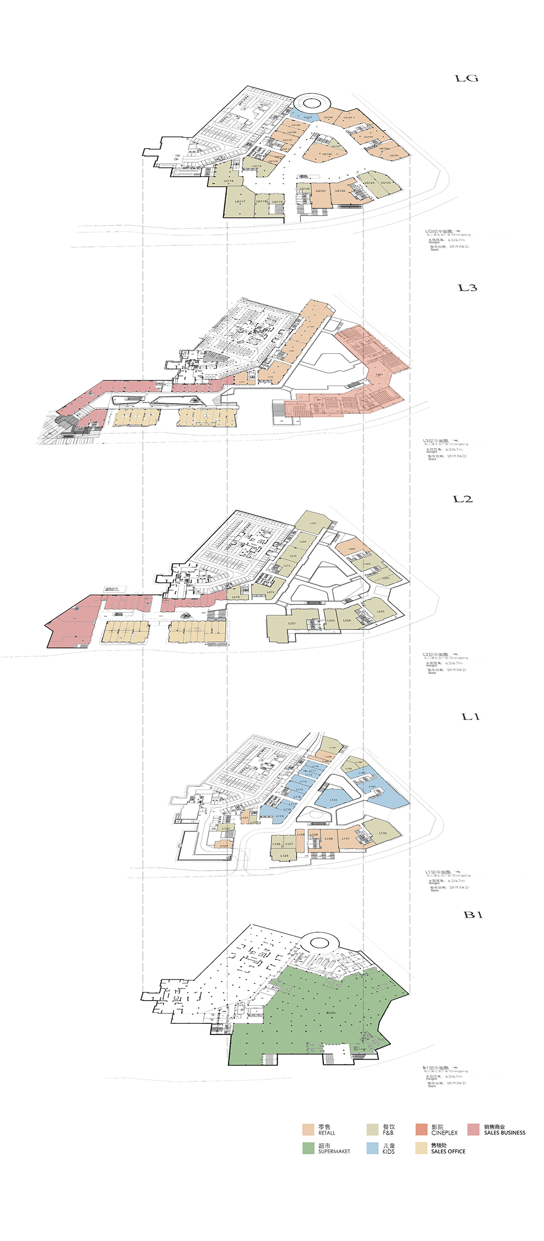 西側(cè)入口近400平米的前廣場,規(guī)劃了更多的城市與建筑的界面,臨近幼兒園,以老人及小孩為客戶主體,模糊城市空間與綜合體的界限,加強(qiáng)功能之間的相互支撐,帶動街區(qū)活力。
