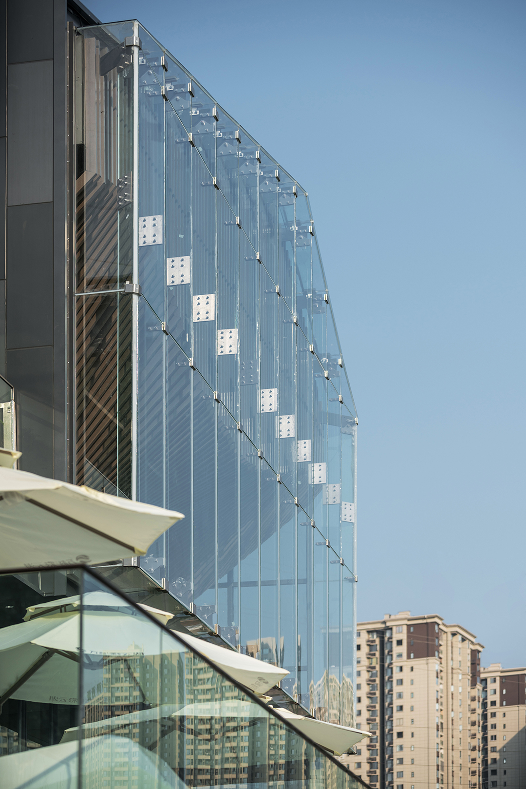 每一個局部在形式上塑成母題上的統(tǒng)一,在通透的超白玻璃后面,水的曲線,利用木格柵抽象的表達(dá),它與整體是具有創(chuàng)造性的有機(jī)關(guān)系。