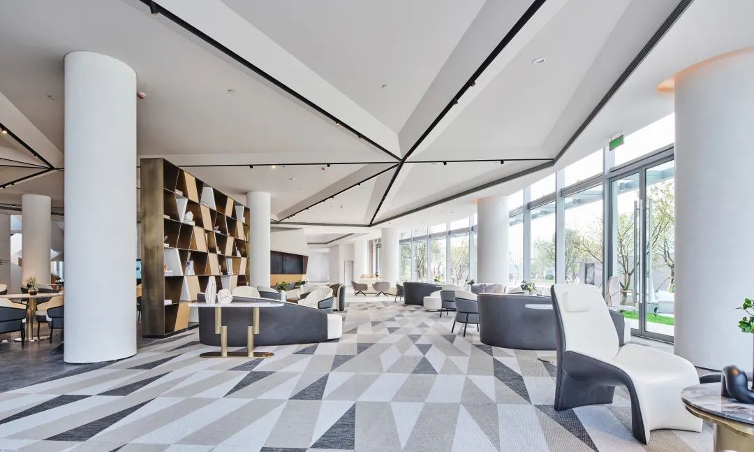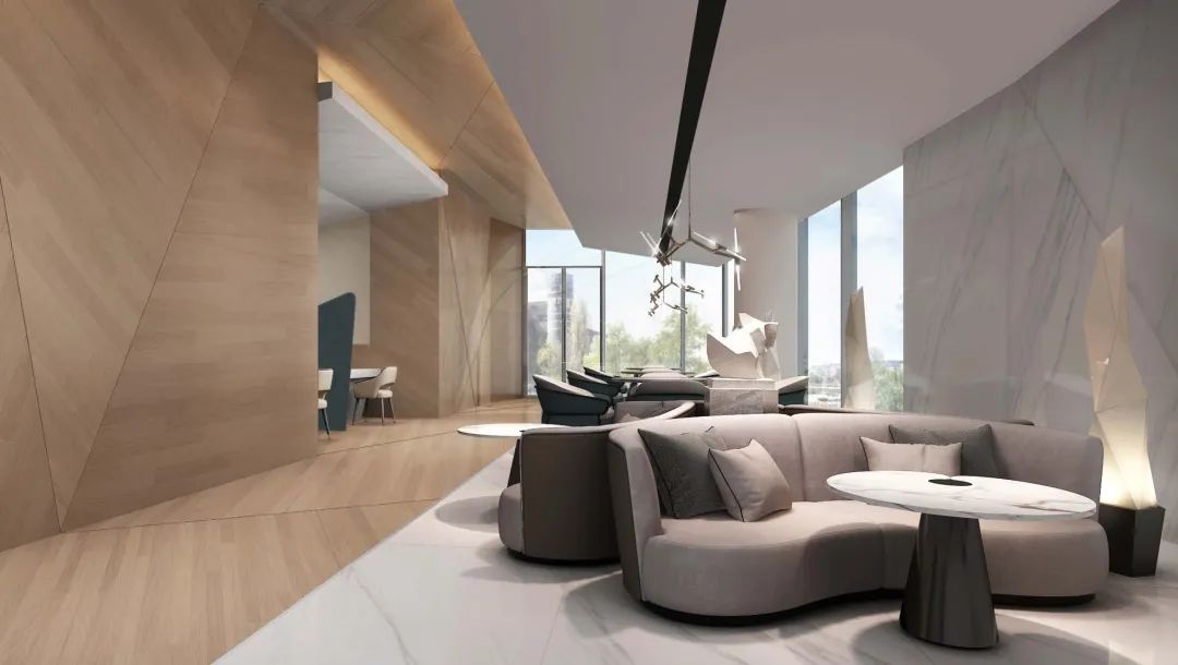 幾何轉(zhuǎn)折的玻璃面、不規(guī)則的折線旋梯,與建筑整體風格相呼應(yīng)的同時,帶來藝術(shù)感和科技感完美結(jié)合的室內(nèi)空間。