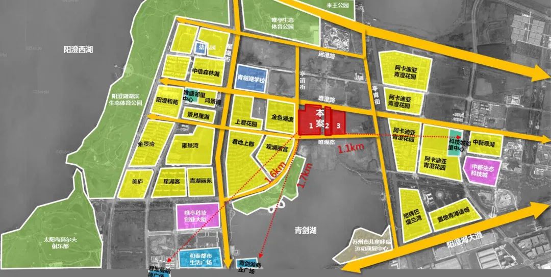 本案位于蘇州工業(yè)園區(qū)唯亭亭誼街東、唯觀(guān)路北,規(guī)劃為園區(qū)城鐵綜合商務(wù)副中心,生態(tài)優(yōu)良,且距離園區(qū)湖東核心5公里,與湖東、湖西商圈咫尺之遙,緊鄰中環(huán)北線(xiàn)及星湖街等城市主干道,到達(dá)園區(qū)及相關(guān)城市核心區(qū)車(chē)程15分鐘左右,交通便利,西北側(cè)有城市公交車(chē)首末站。
