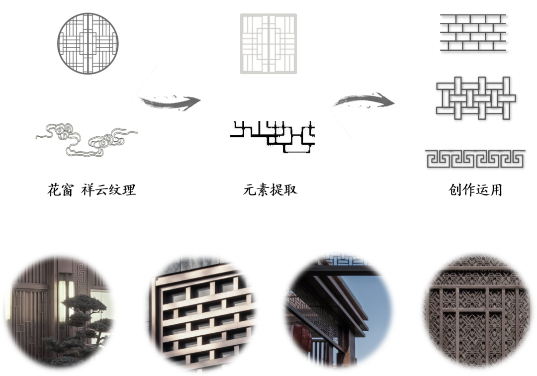 運(yùn)用黛瓦形成質(zhì)樸淡雅的建筑風(fēng)格,濃縮著傳統(tǒng)建筑的精髓,來(lái)美化屋面輪廓的作用,把屋頂、屋檐高低錯(cuò)落的形體節(jié)奏形成庭院深邃的建筑群體風(fēng)貌。