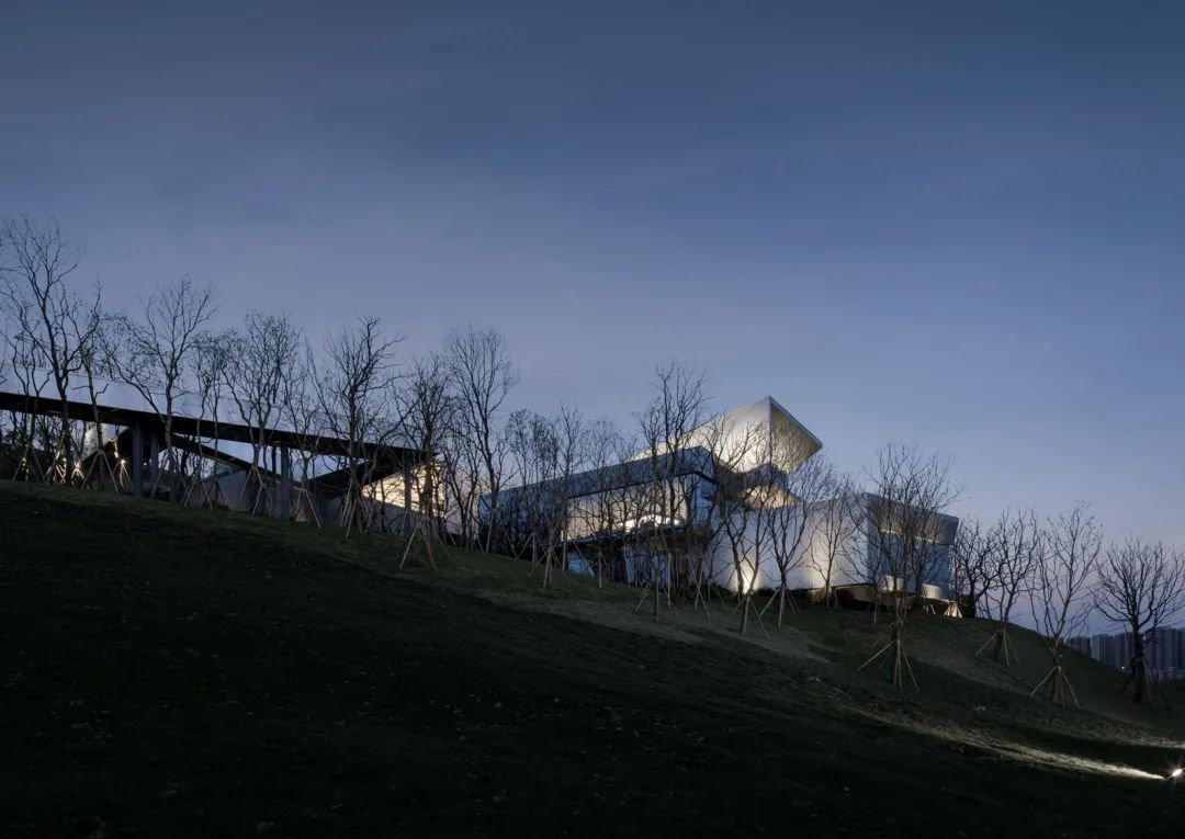 本案毗鄰重慶渝北區(qū)花石溝公園,基地位于小山坡上,設(shè)計(jì)師讓建筑與環(huán)境和平共處,并不試圖破壞或戰(zhàn)勝它們的直接背景。作為社區(qū)活動(dòng)中心,希望人們不再仰視它,而是放低視角親自體驗(yàn)它,這才是建筑的歸宿。