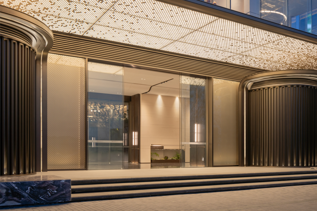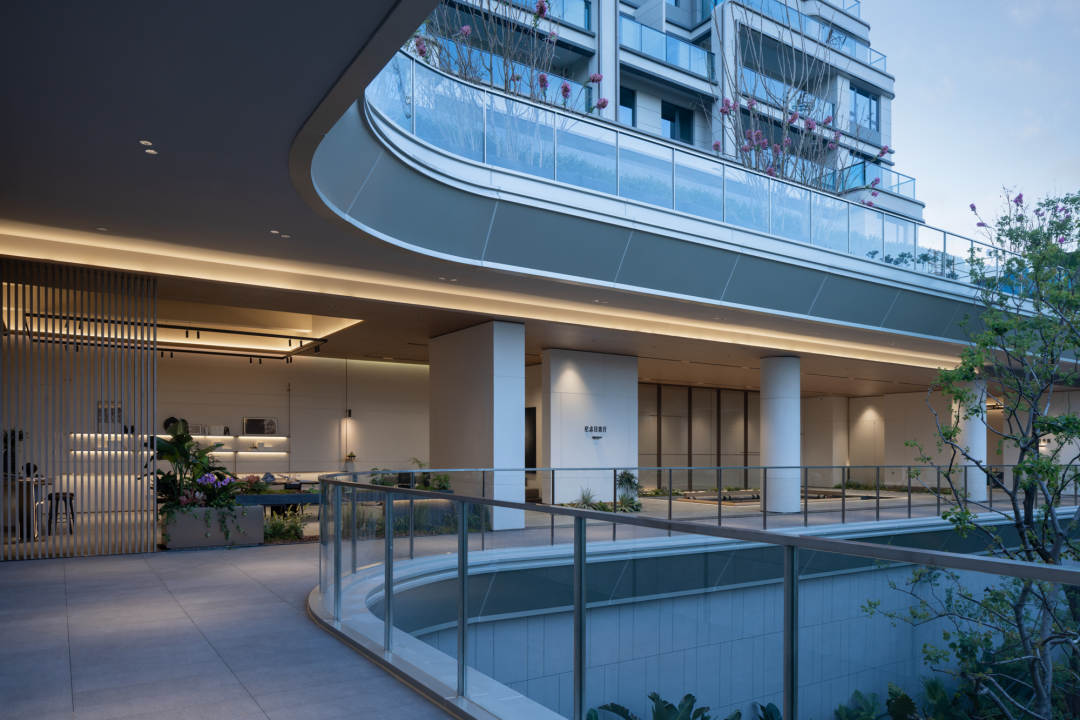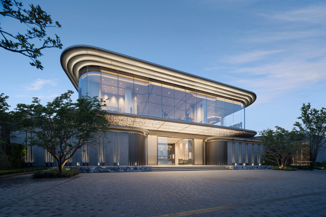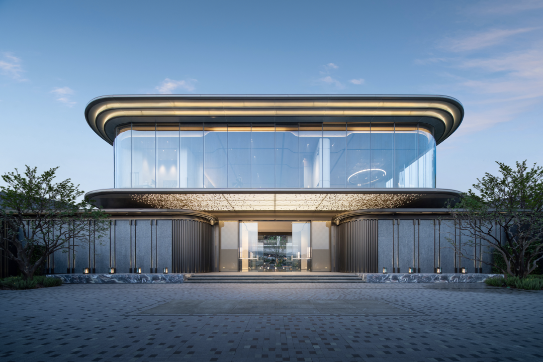 沿著庭院廊橋拾級而上,漫步在自然的院落中,建筑緩緩展現(xiàn)在我們眼前。暖暖的米色墻面搭配著高級灰,香檳金的金屬線條勾勒出建筑的輪廓,建筑上弧形的線條,入戶大堂弧形的玻璃讓我們忘記了鋼筋混凝土的堅硬,我們的心慢慢融入這個園區(qū),享受此刻的寧靜和諧。
