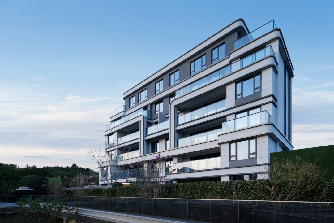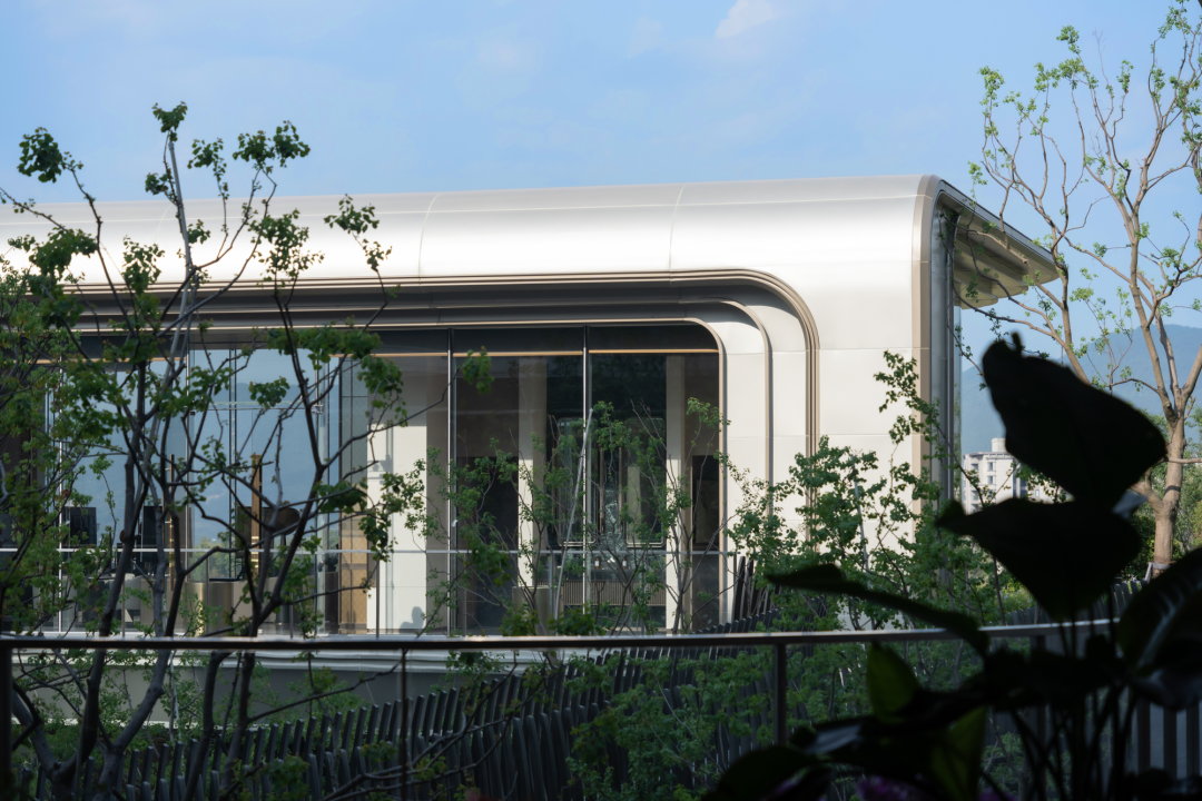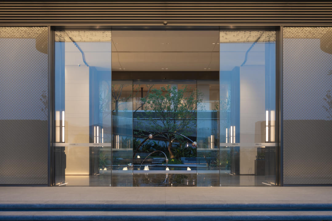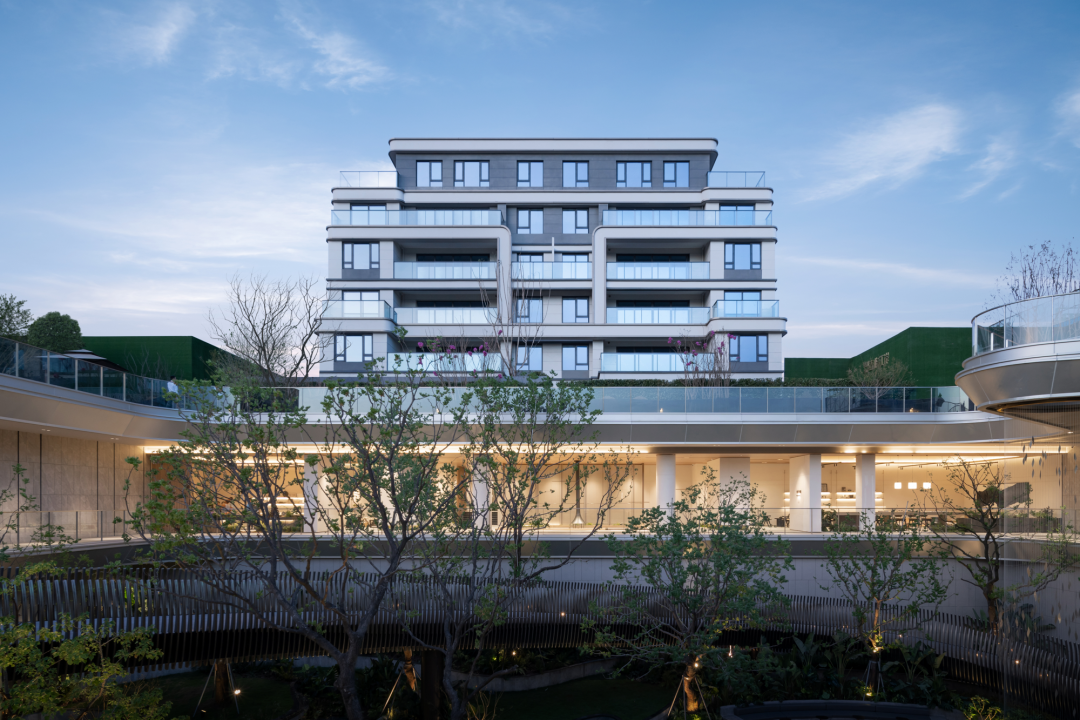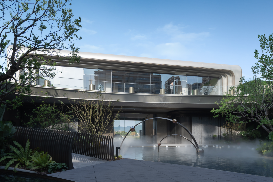 沿著庭院廊橋拾級而上,漫步在自然的院落中,建筑緩緩展現(xiàn)在我們眼前。暖暖的米色墻面搭配著高級灰,香檳金的金屬線條勾勒出建筑的輪廓,建筑上弧形的線條,入戶大堂弧形的玻璃讓我們忘記了鋼筋混凝土的堅硬,我們的心慢慢融入這個園區(qū),享受此刻的寧靜和諧。