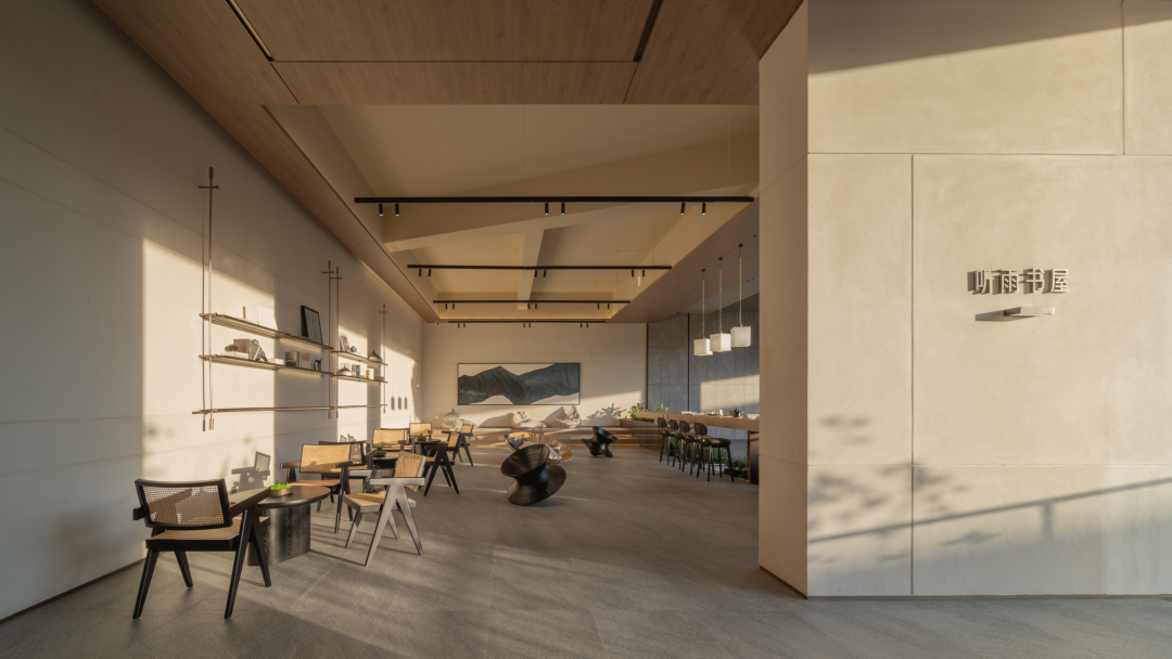 通過浮光廊橋到達建筑二層在架空層聽雨書屋處可稍作休憩,抑或品茶會友,抑或?qū)拈e談,既是空間序列的過渡,也不失為一處愜意的業(yè)主鄰里交流場所。