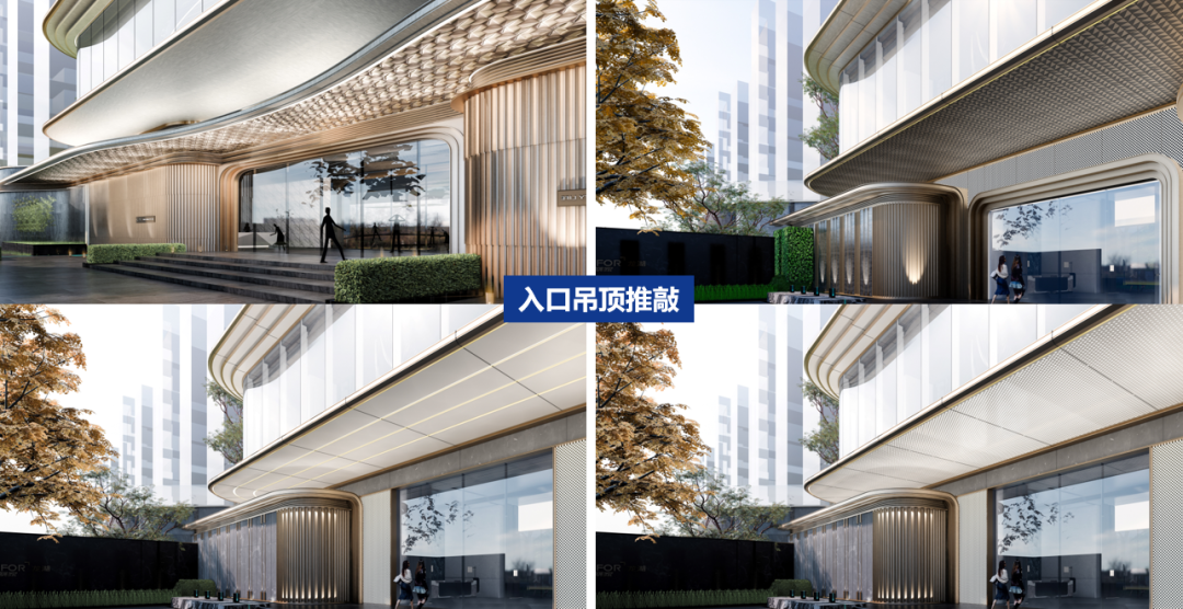 入口的吊頂經(jīng)過多種方案推敲,我們認為星空頂在視覺上能強化入口的尊貴感與儀式感,且在成本與施工周期上也占據(jù)優(yōu)勢。