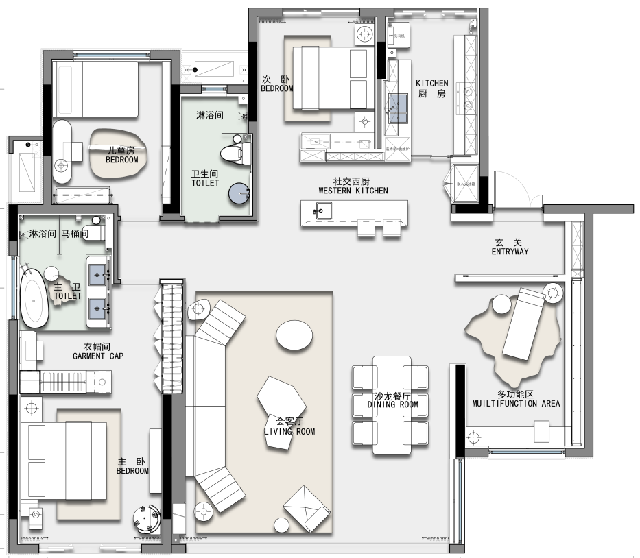 | 雙陽臺設(shè)計,獨立家政空間