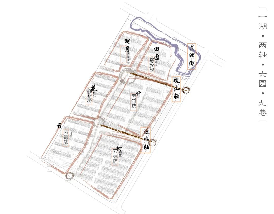 本案采取貨值最大化的排布,空間利用率佳,對外更為開闊。設(shè)計以桃源行為文化靈感來源,依托房型分布規(guī)劃了“一湖?兩軸?六園?九巷”的文化格局,綠植交映下,現(xiàn)代建筑規(guī)制與東方人居理念完美融合。