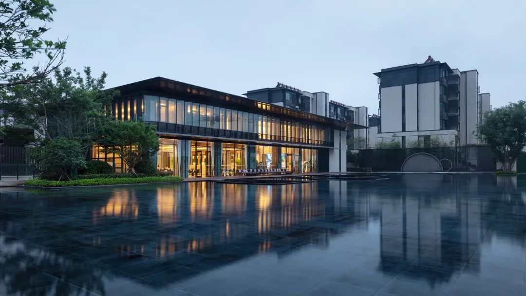 從建筑整體來看,太湖如院的新中式風(fēng)格既簡約又不失時代厚重感,在細節(jié)設(shè)計上,不同于常規(guī)新中式往往采用繁瑣的紋飾雕花,而是在現(xiàn)代藝術(shù)設(shè)計語境下形成更為契合當(dāng)下審美的新中式,配合高端宜居的居住氛圍。