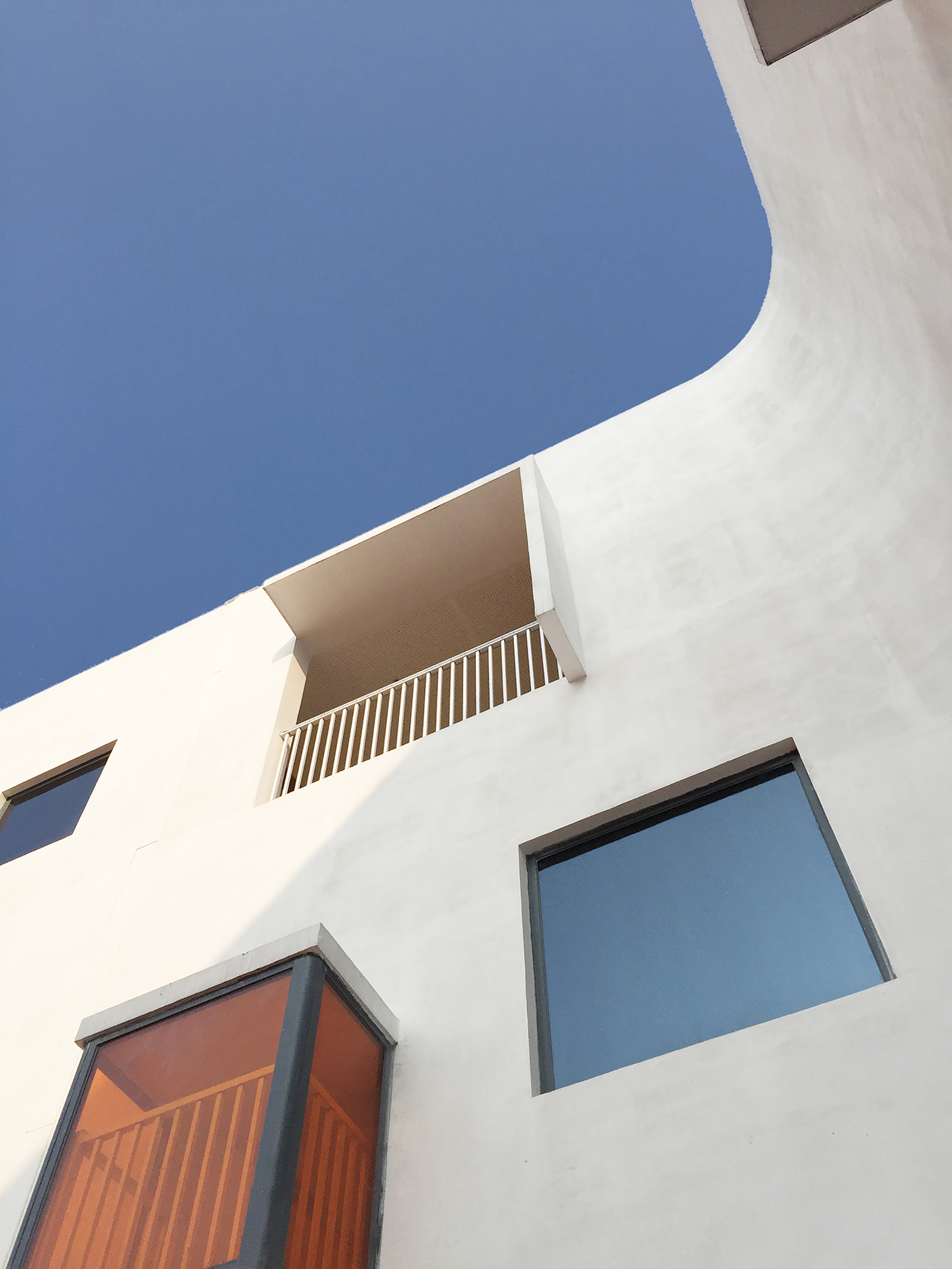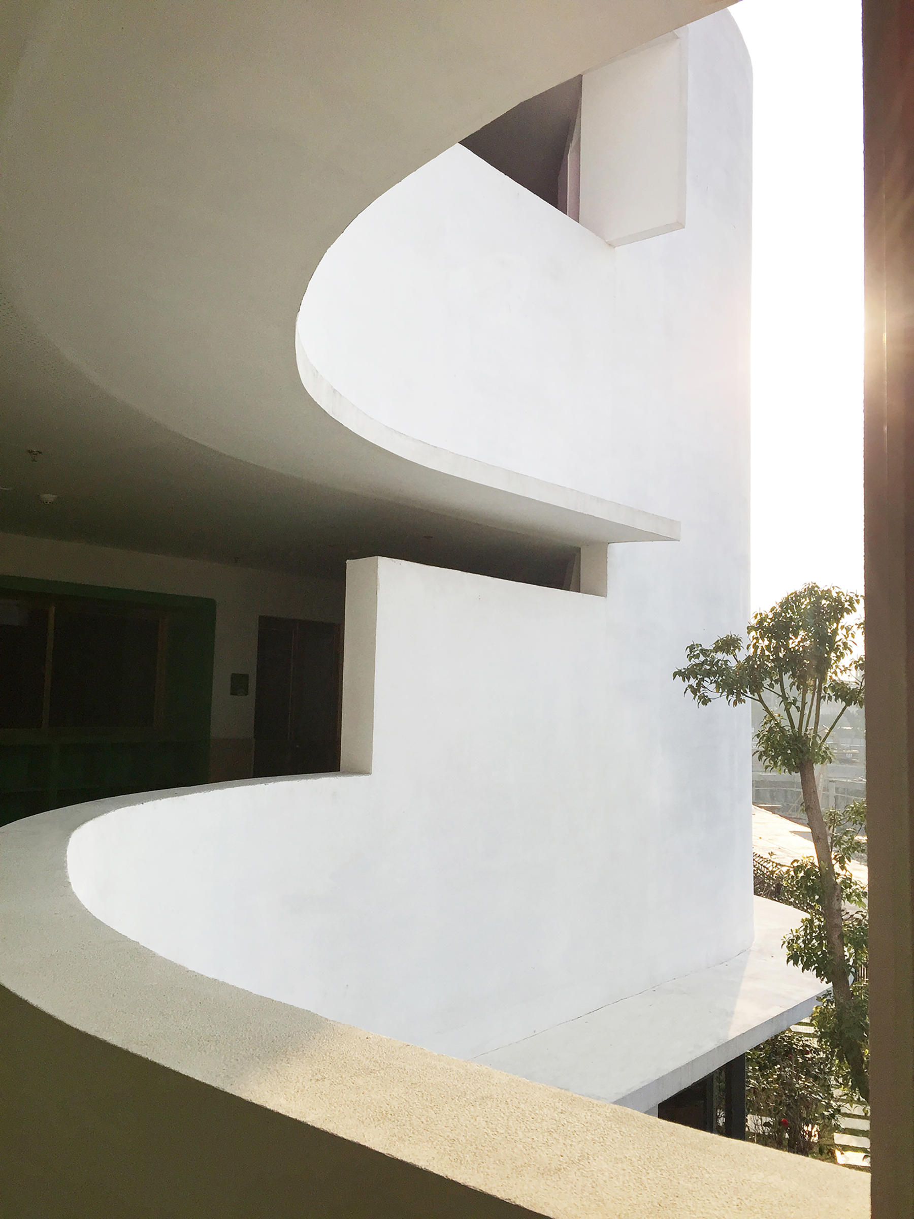不同尺度的洞口隨陽(yáng)光照射角度的不同也為走廊空間塑造了生動(dòng)的光影效果,無(wú)論從室內(nèi)還是室外都帶給人豐富的視覺(jué)體驗(yàn)。