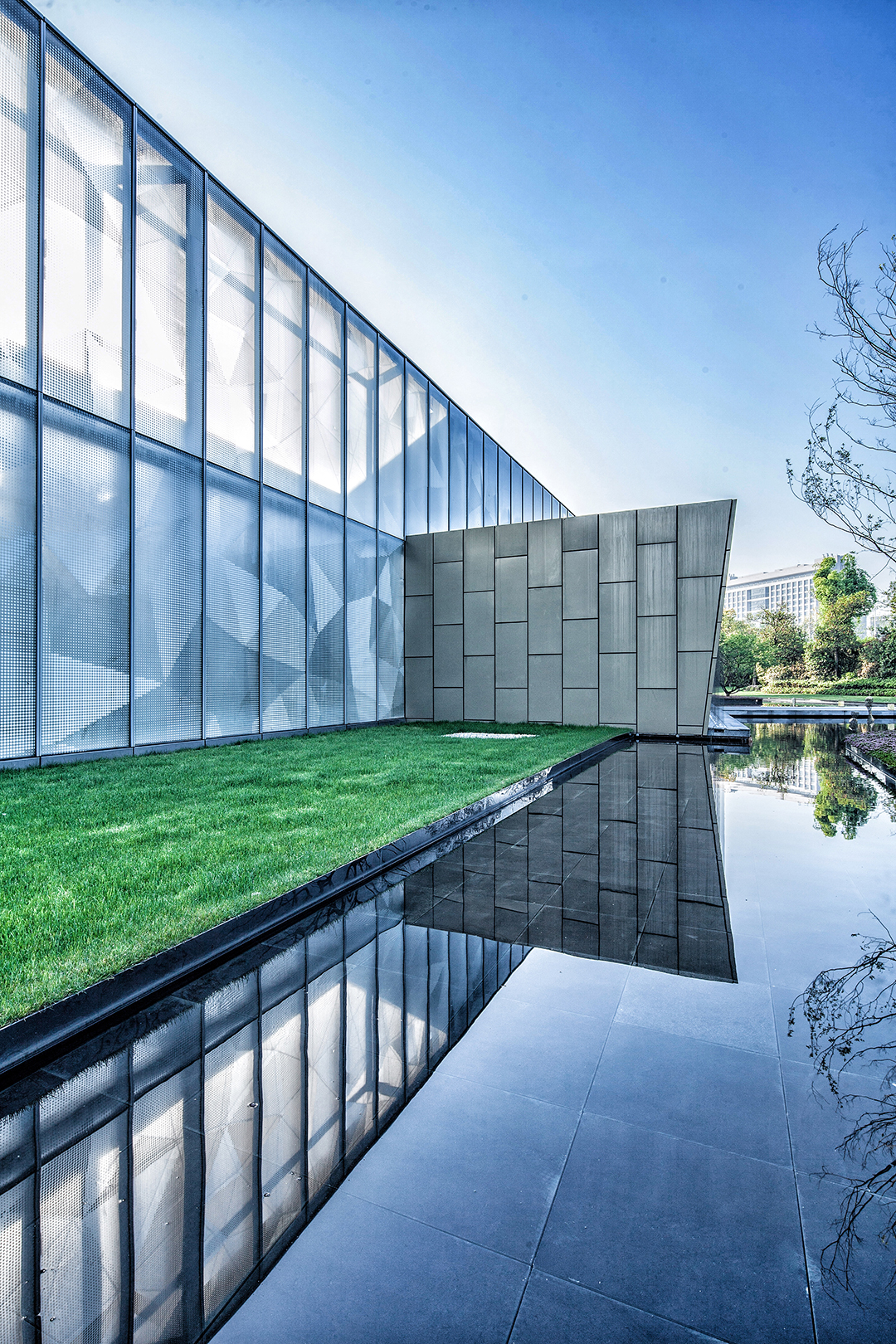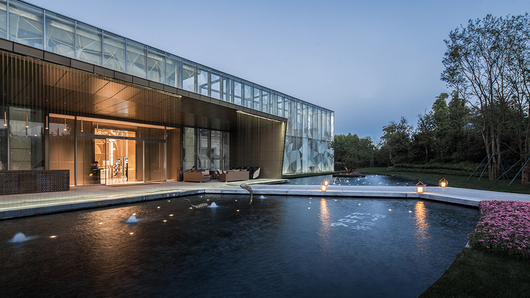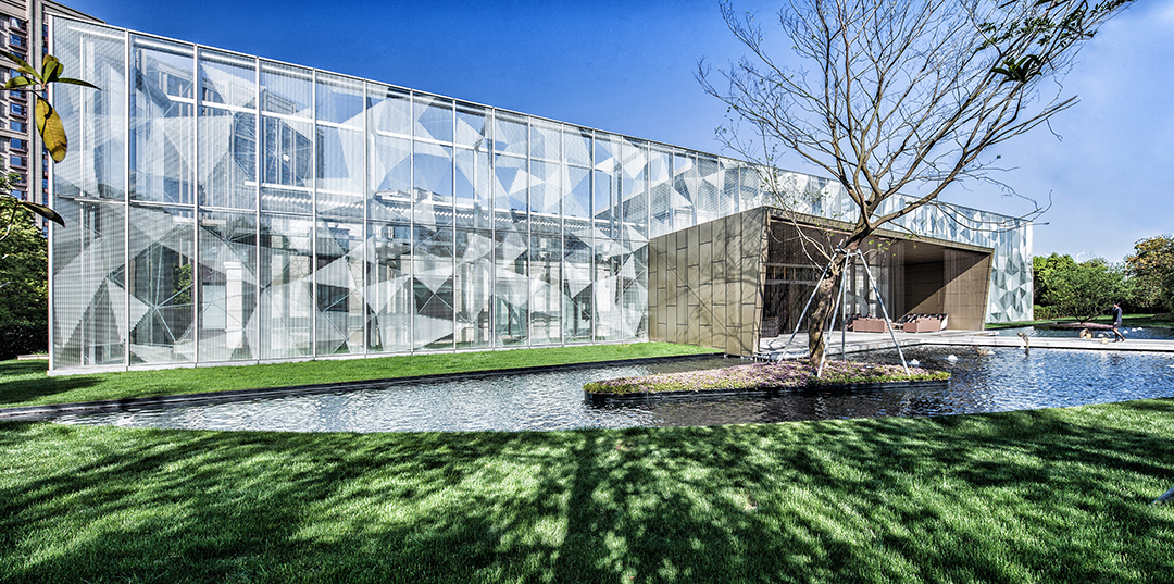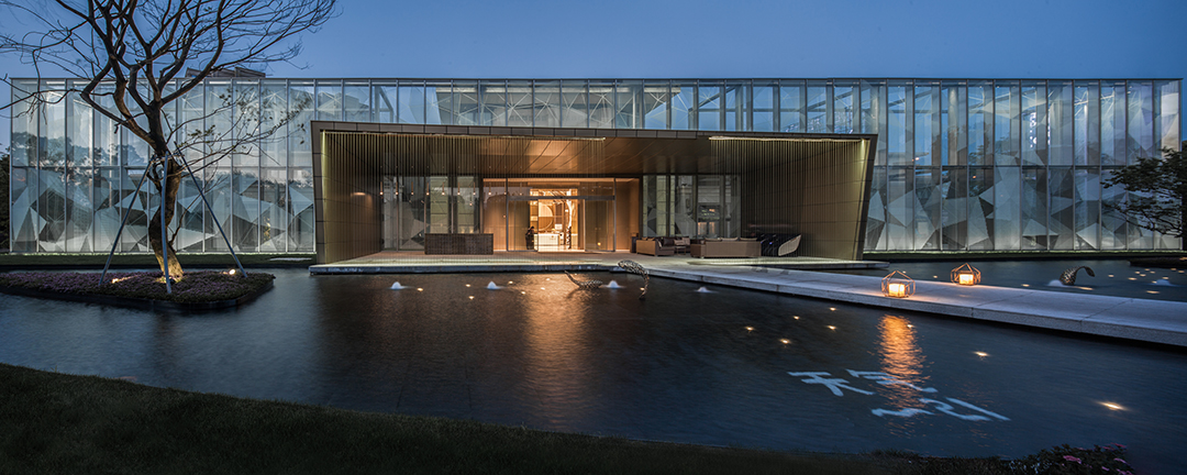一個(gè)極簡(jiǎn)的立方體,只是通過(guò)玻璃幕墻的處理,塑造一個(gè)“星空”,巧借人工,抽象自然。這個(gè)項(xiàng)目的設(shè)計(jì)源于景、表以形、達(dá)于意,由景入境,通過(guò)一個(gè)純凈的玻璃盒子喚起人們內(nèi)心的自然意趣、山水情懷?!霸扑⒎健?,巧借人工,抽象自然。