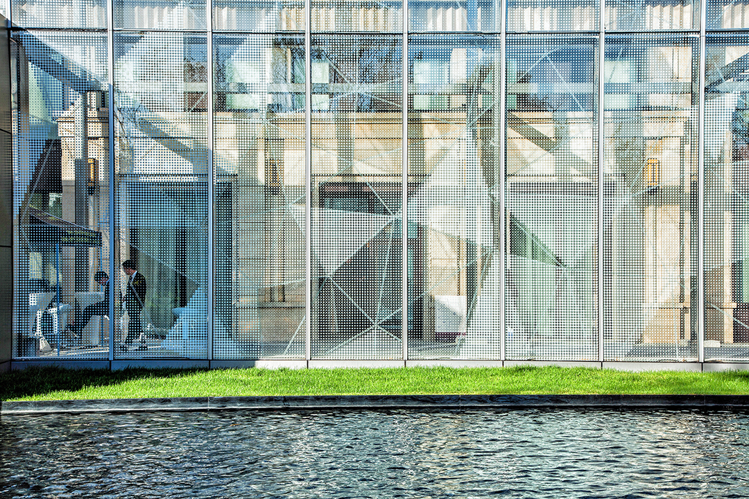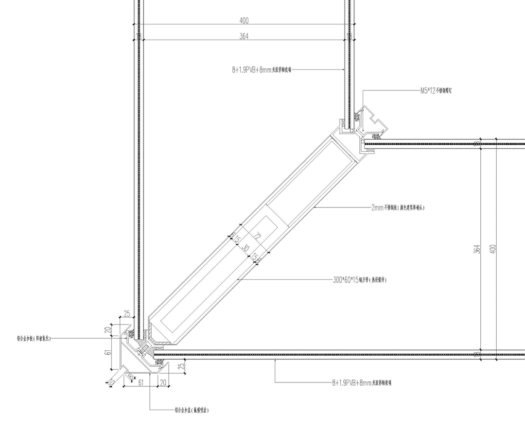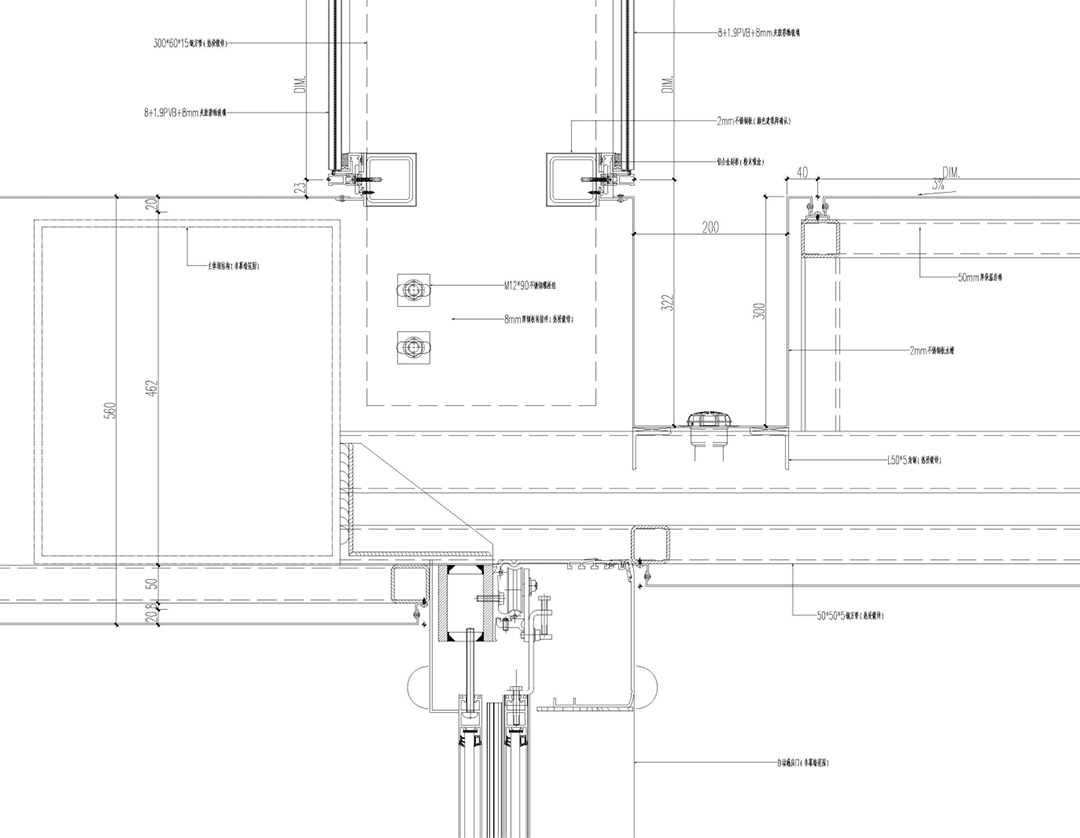 對(duì)于空間和時(shí)間的截取,希望營(yíng)造出完整的視覺(jué)體驗(yàn),因此對(duì)于每一個(gè)節(jié)點(diǎn)的把控也到位精準(zhǔn)。立面玻璃幕墻總長(zhǎng)達(dá)80米,幕墻高度為10.2米,每塊玻璃均是5.1米。如此大面積的玻璃幕墻已然考驗(yàn)施工工藝。彩釉玻璃的多次打樣,及鋼柱位置和重新打造樁基的退讓,以達(dá)到與原建筑的遮掩重合視覺(jué)效果。