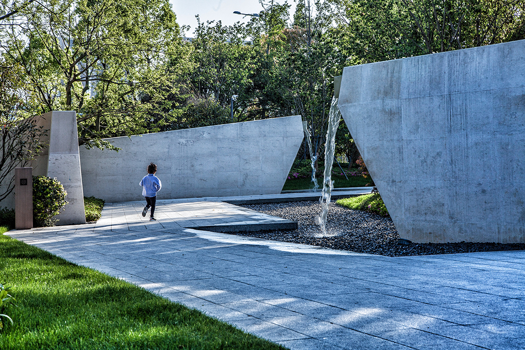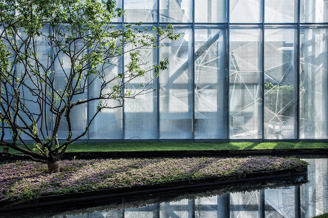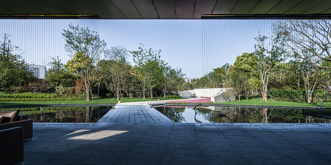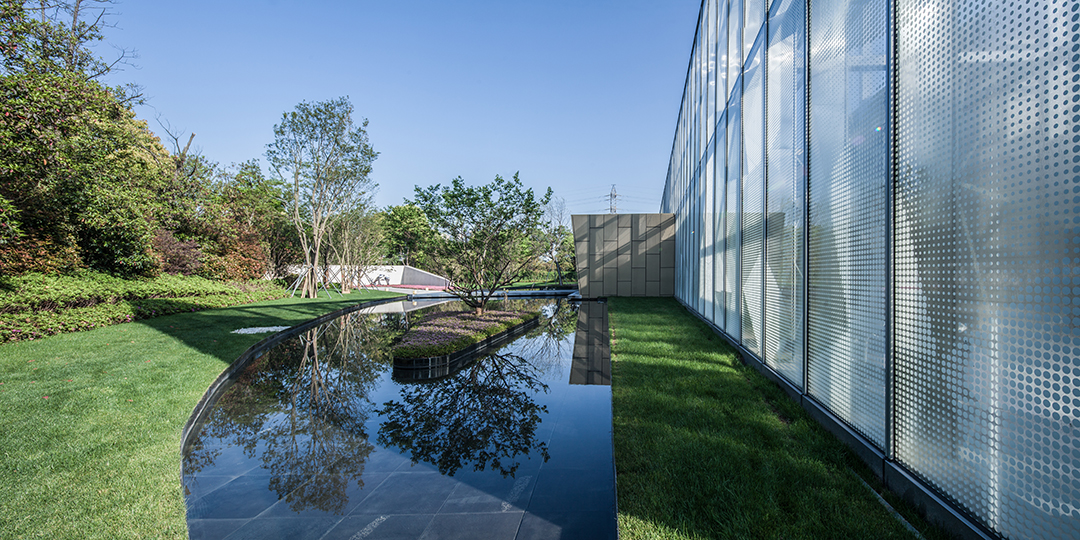 在通透玻璃的立面處理設(shè)置水池的處理,水元素的引用為建筑的構(gòu)成增添了自然的樂(lè)趣,繼而把室內(nèi)與室外的鮮活結(jié)合了起來(lái)。