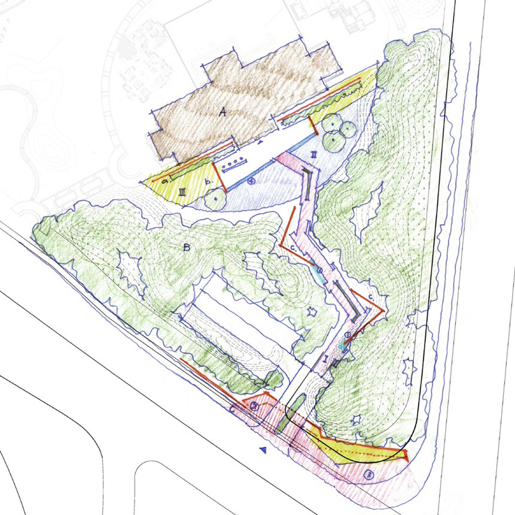 通過(guò)多次方案的推敲,老建筑上的場(chǎng)所營(yíng)造重新通過(guò)景觀引導(dǎo)進(jìn)入路徑,以宏觀的角度看待建筑、景觀與人的根本關(guān)系,