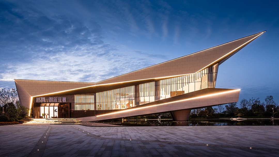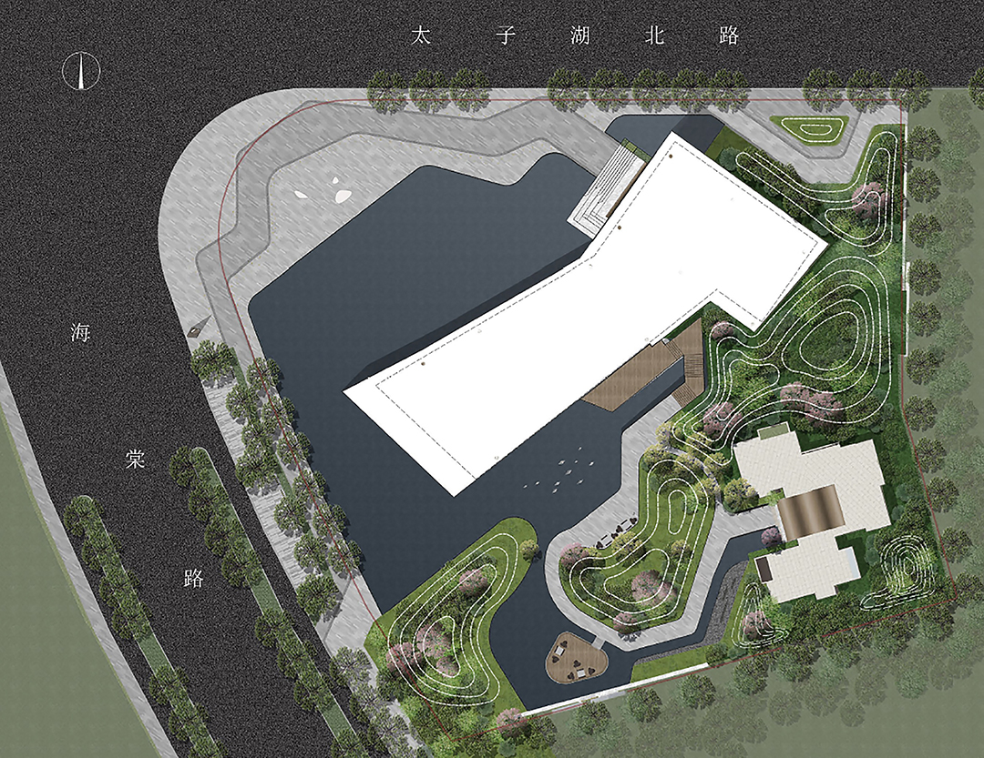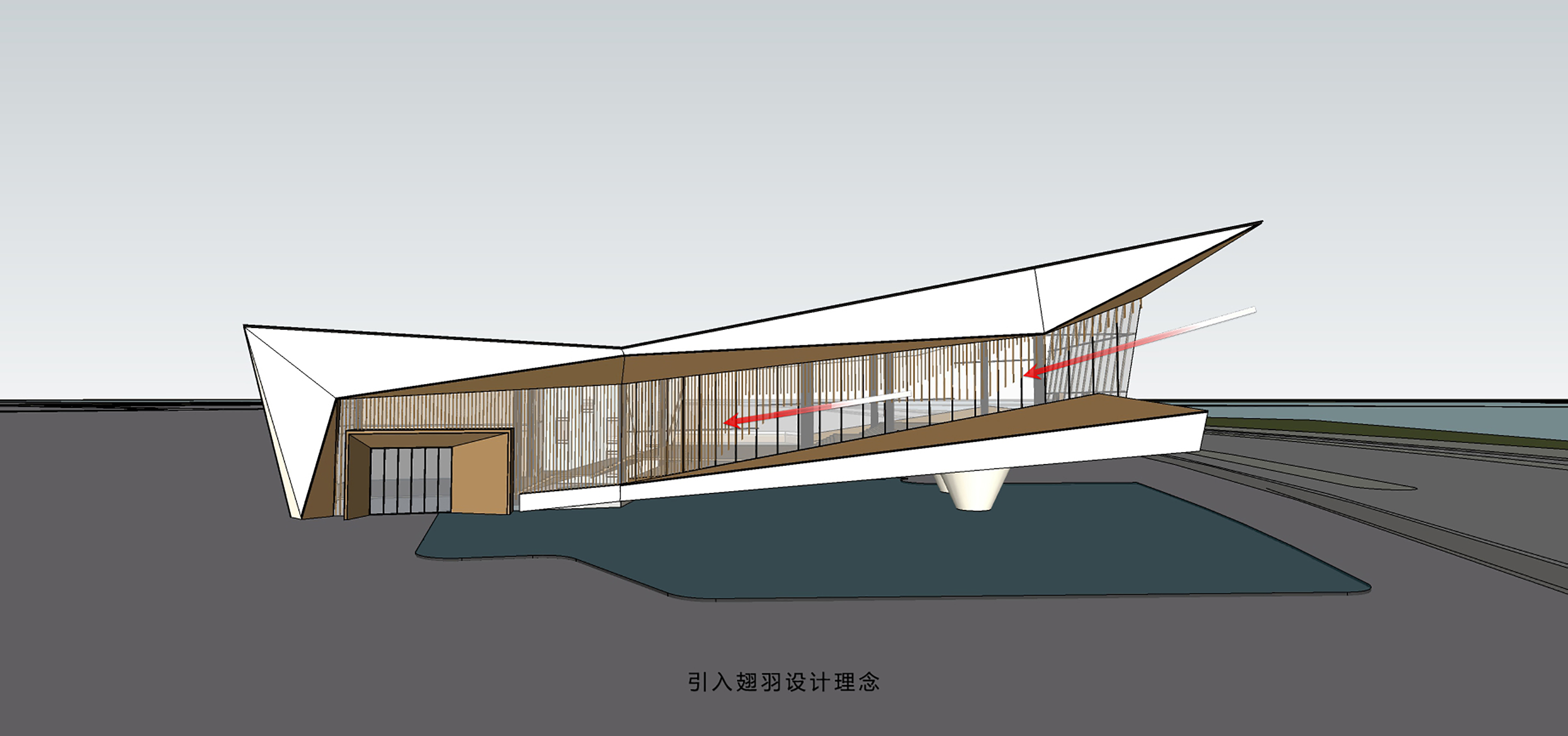 方案伊始于漂浮在水面上的一個(gè)仿生銹鋼板建筑,寓意為拔地而起展翅翱翔的雄鷹,可俯瞰太子湖全景。經(jīng)過(guò)建筑師對(duì)場(chǎng)地和環(huán)境、功能及戶主的需求,利用符號(hào)的異化,重新組織梳理。打造一個(gè)具有展示性、體驗(yàn)性以及可持續(xù)性的建筑。