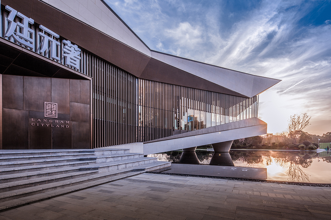 選址在街角是形象最大化展示,建筑的轉(zhuǎn)折形成環(huán)抱型的城市空間,將場(chǎng)地劃分,形成熱鬧的前場(chǎng)和靜謐的后場(chǎng)空間。景觀得到充分的利用,擁有270°的景觀視野,打造良好的城市形象,彰顯整個(gè)體驗(yàn)館形象。