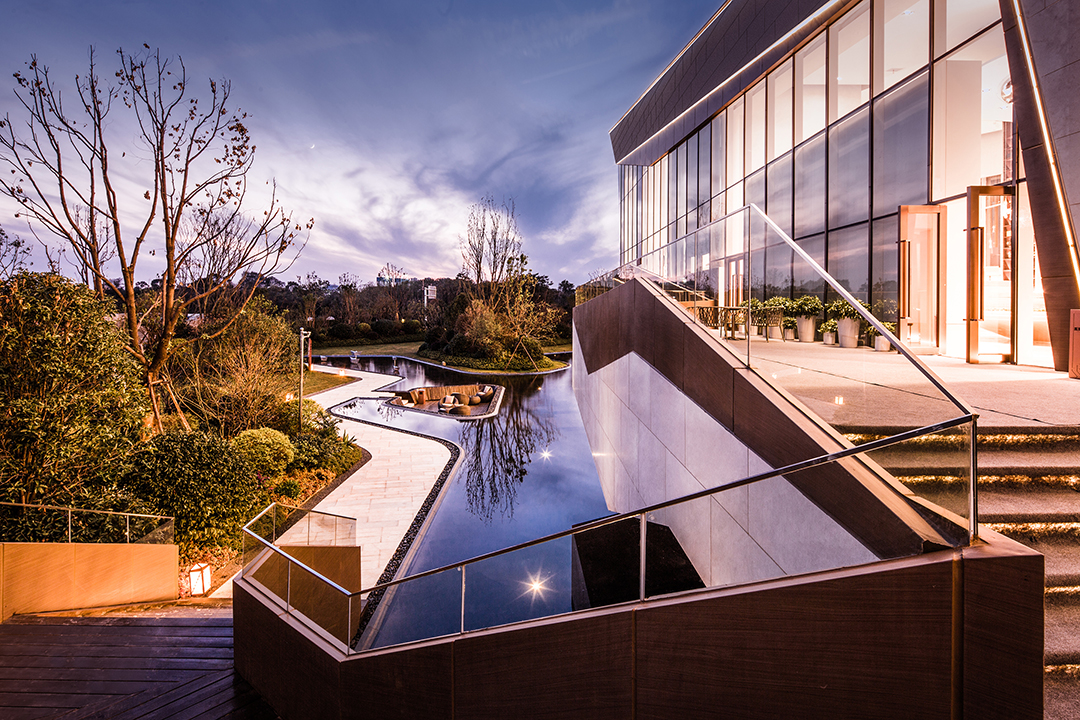 建筑的邊界輪廓使用極簡(jiǎn)線型燈帶,在星空之下顯得格外閃耀分明。外立面使用的三種不同材料層層遞進(jìn),更具層次感,使建筑在夜晚更晶瑩剔透。