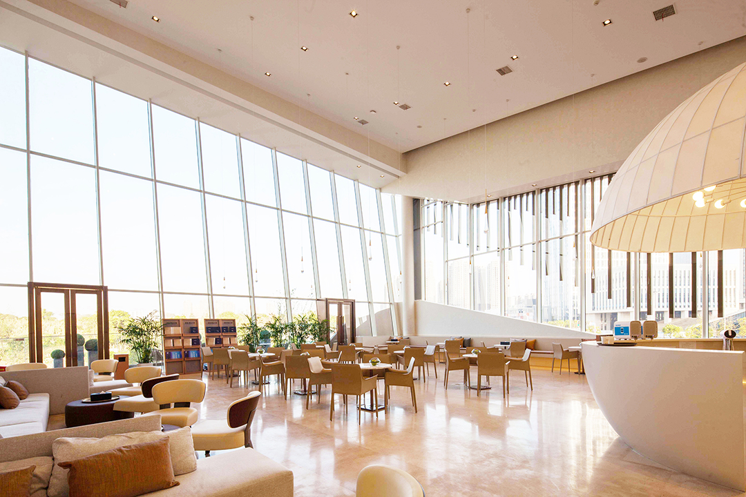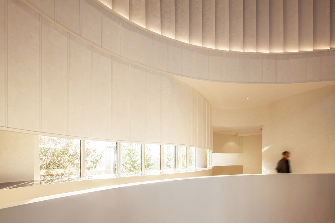 進(jìn)入前廳大堂,以精雕細(xì)琢的雕塑展現(xiàn)無(wú)處不在的現(xiàn)代時(shí)尚感,材質(zhì)的搭配與燈光色彩的調(diào)諧,讓設(shè)計(jì)流光溢彩;順階梯而上,自然光線經(jīng)由大片玻璃灑入室內(nèi)展覽空間,將外景一覽無(wú)余。