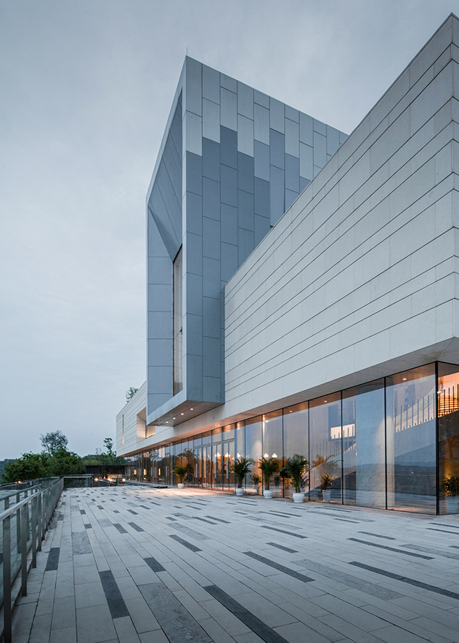 建成后的整個建筑仿佛一個懸崖上的舞者,與山、與石、與環(huán)境恰當(dāng)?shù)娜诤显谝黄穑h(yuǎn)眺著江陵江,使得一個高檔而尊貴的生態(tài)文化活動中心卻又顯得那么低調(diào)。