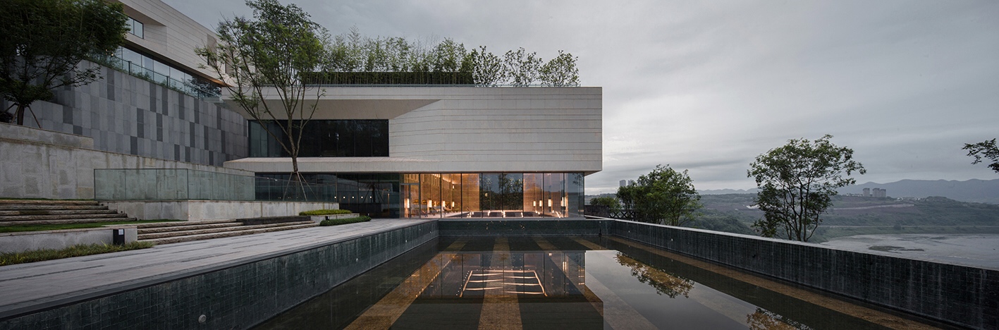 項目位于重慶市北部新區(qū)黃茅坪,順山為場,應(yīng)水為策,將建筑化零為整,錯落有致,尋找建筑與自然的共生。設(shè)計為與地形契合,以“由高入低、錯落層疊”設(shè)計手法,合理排布各使用功能,江景資源最大化,坡地的營造和利用反映出建筑對自然環(huán)境、人文生態(tài)城市的關(guān)懷。