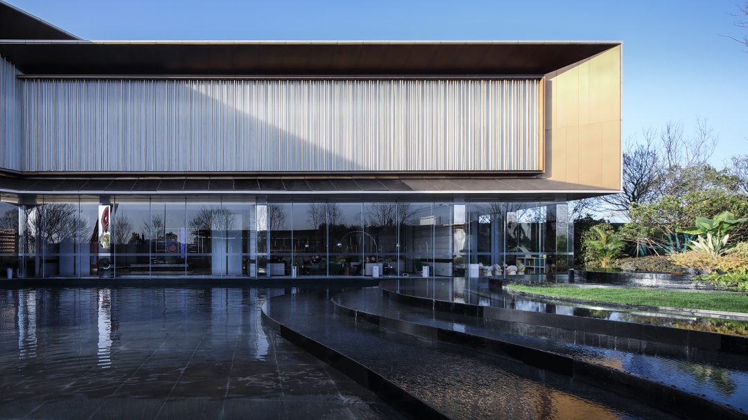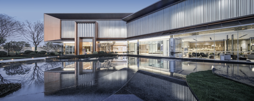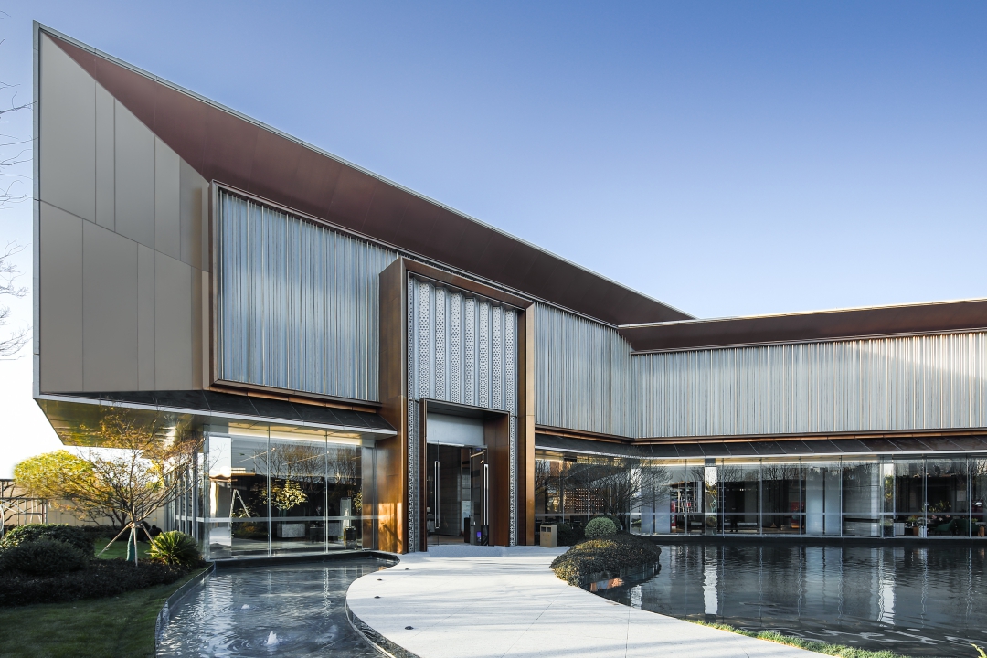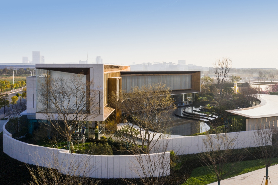 錦繡樾江府生活美學館位于南京江北自貿區(qū)研新路與園特路交匯處,是社區(qū)配套商業(yè)街的一部分。在設計中將建筑與室外景觀相互襯托,在唯美的人工空間中,引入一絲自然的環(huán)境美,營造一個有溫度、會交流的生活美學館。