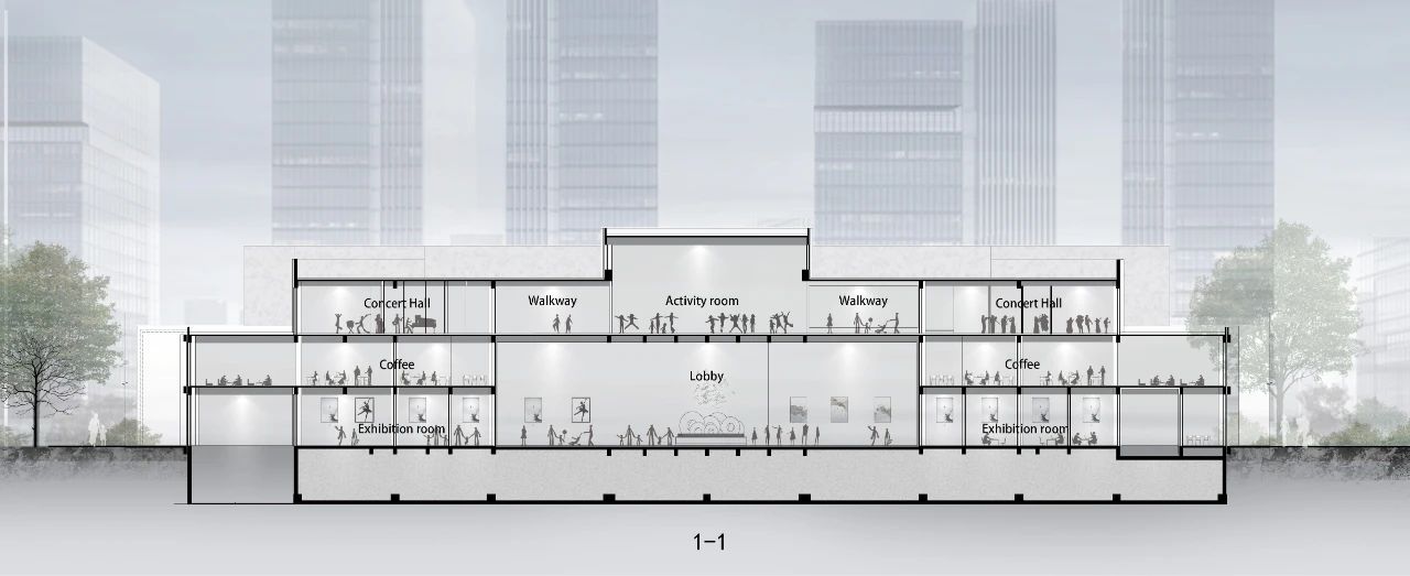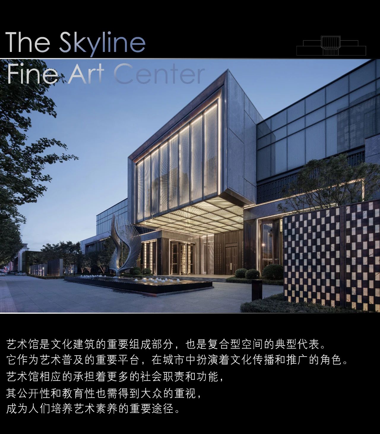 藝術(shù)館應(yīng)被賦予公共教育的之能,這從本質(zhì)上決定藝術(shù)館的空間設(shè)計應(yīng)具有前瞻性和挑戰(zhàn)性。它不能孤芳自賞,需要讓觀眾不僅是欣賞藝術(shù)還要接受藝術(shù)和融入藝術(shù)。The Skyline Fine Art Center 以家門口的藝術(shù)館作為理念,給予觀者體驗之后,形成反饋的空間,這才是藝術(shù)的全過程。