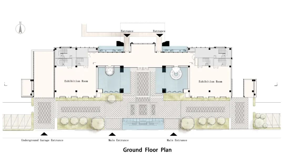 藝術(shù)館在城市視覺方面作為視覺的焦點,擁有低調(diào)豐滿的建筑外形才能吸引人們的注意,打破城市界面,導(dǎo)入人群,增加藝術(shù)館的可達性??臻g塑形之后,建筑表皮的細節(jié)與精致則耐人尋味。