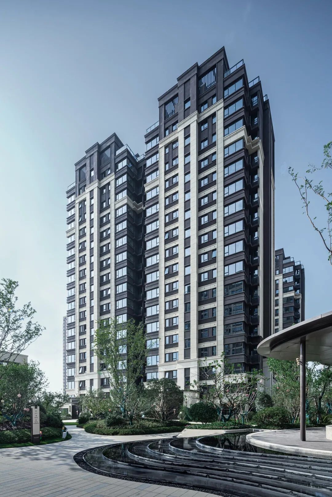 立面設(shè)計(jì)采用新典雅風(fēng)格,提取古典建筑經(jīng)典特征與現(xiàn)代設(shè)計(jì)手法相結(jié)合,形成序列有致的城市天際輪廓。住宅的立面形體間相互穿插、高低錯(cuò)落,演繹出經(jīng)典建筑莊重典雅的氣質(zhì)。