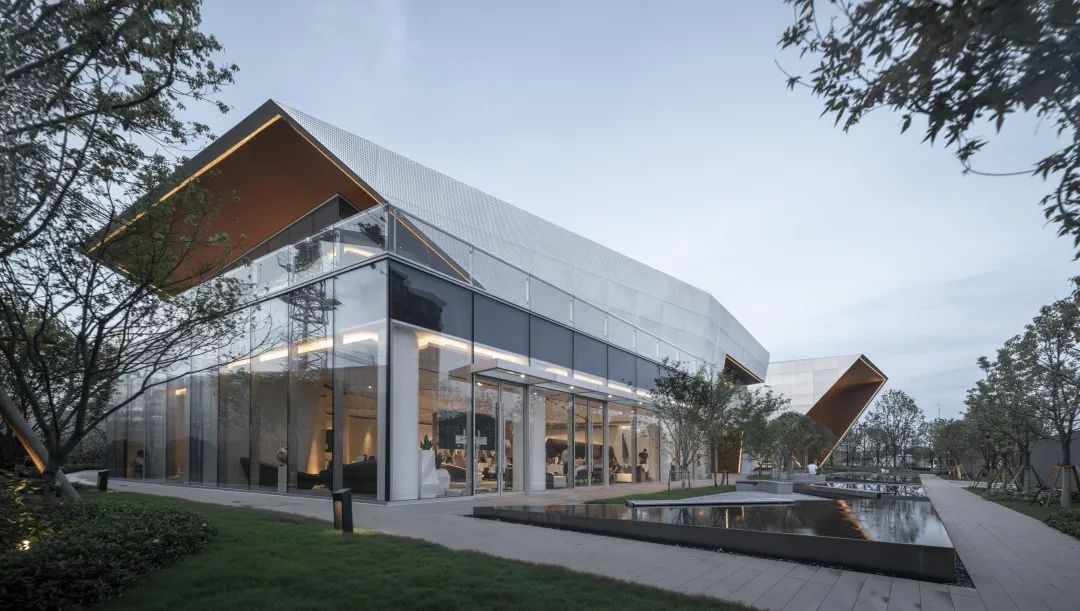 這座標志性的建筑位于湖南省株洲市天元區(qū),南面可遠眺萬豐湖濕地公園。建筑形態(tài)呈現(xiàn)出兩塊幾何變形的空間序列,并于內(nèi)部空間和外部景觀間建立一個精心編排的體驗序列。