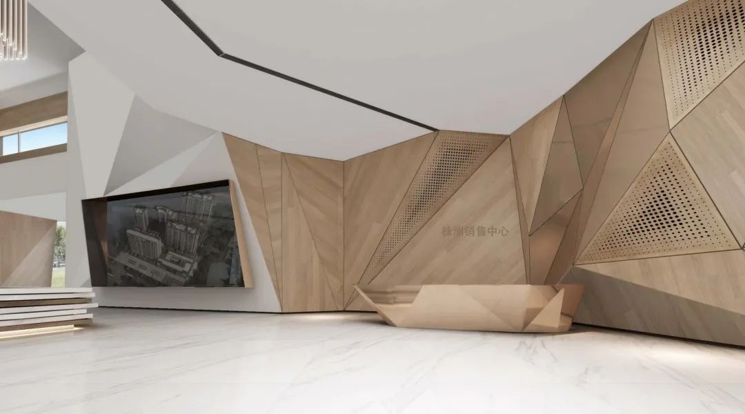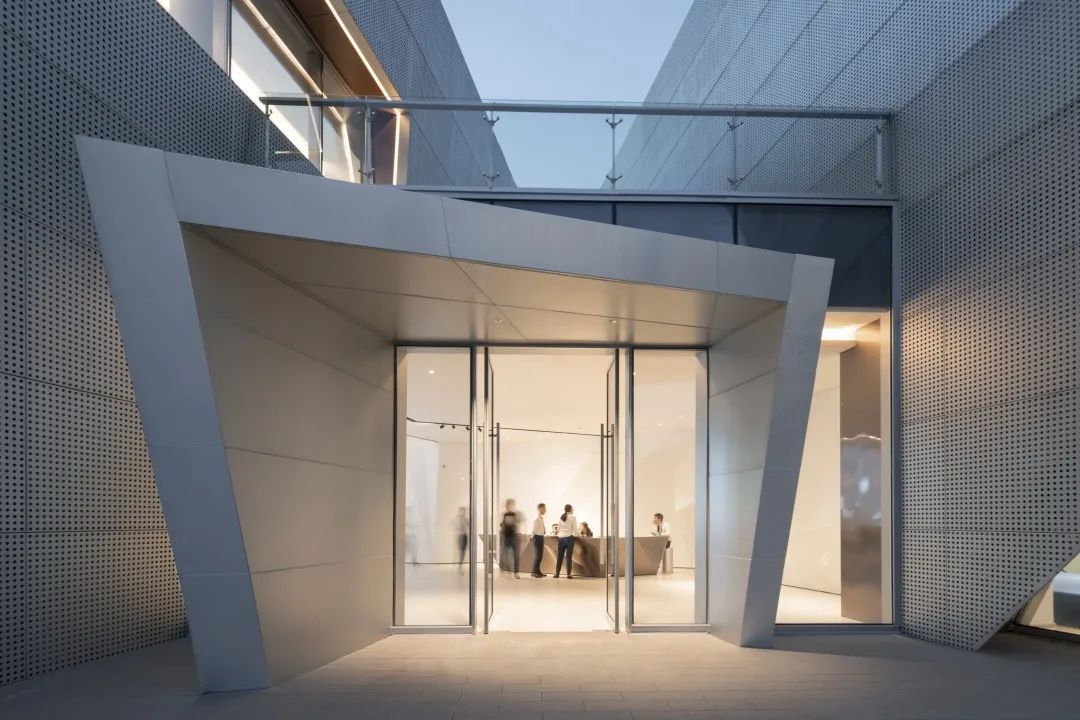 通過對體塊的切割,形成前衛(wèi)現(xiàn)代的建筑形體。大面積穿孔鋁板、仿木紋鋁板和玻璃體塊的結(jié)合,使得整體形象極富張力和工業(yè)美感。