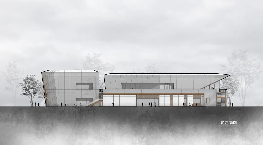在二樓兩個體塊間預留預留露臺空間,來訪者可以到達建筑的屋頂露臺,從而欣賞萬豐湖濕地公園的全景風貌。并于露臺預留架設(shè)天文望遠鏡的空間,游客可于此仰望滿天繁星。