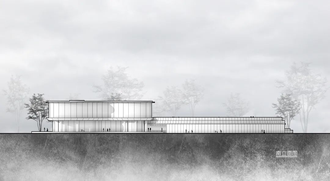 項(xiàng)目設(shè)計(jì)之初,如何能在山河之間形成一所既能充分享有景觀資源,又不會(huì)被周邊鱗次櫛比的建筑淹沒(méi)的“小”藝術(shù)館是思考的重點(diǎn)。未來(lái)在旁邊的山頭還會(huì)有坂茂設(shè)計(jì)的濕地博物館,怎么讓這兩所關(guān)系緊密的建筑完美結(jié)合也是設(shè)計(jì)立意的另一維度。
