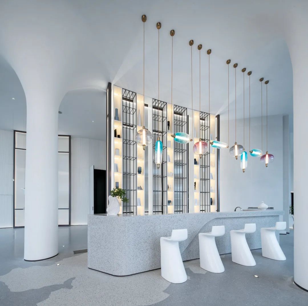 一片縈繞在山間的云,山中有云,云間有山。設(shè)計(jì)尋找一種新的語(yǔ)言,將東方的意境以更加未來(lái)的方式呈現(xiàn),創(chuàng)造出東方文化與現(xiàn)代主義相結(jié)合的全新體驗(yàn)。
