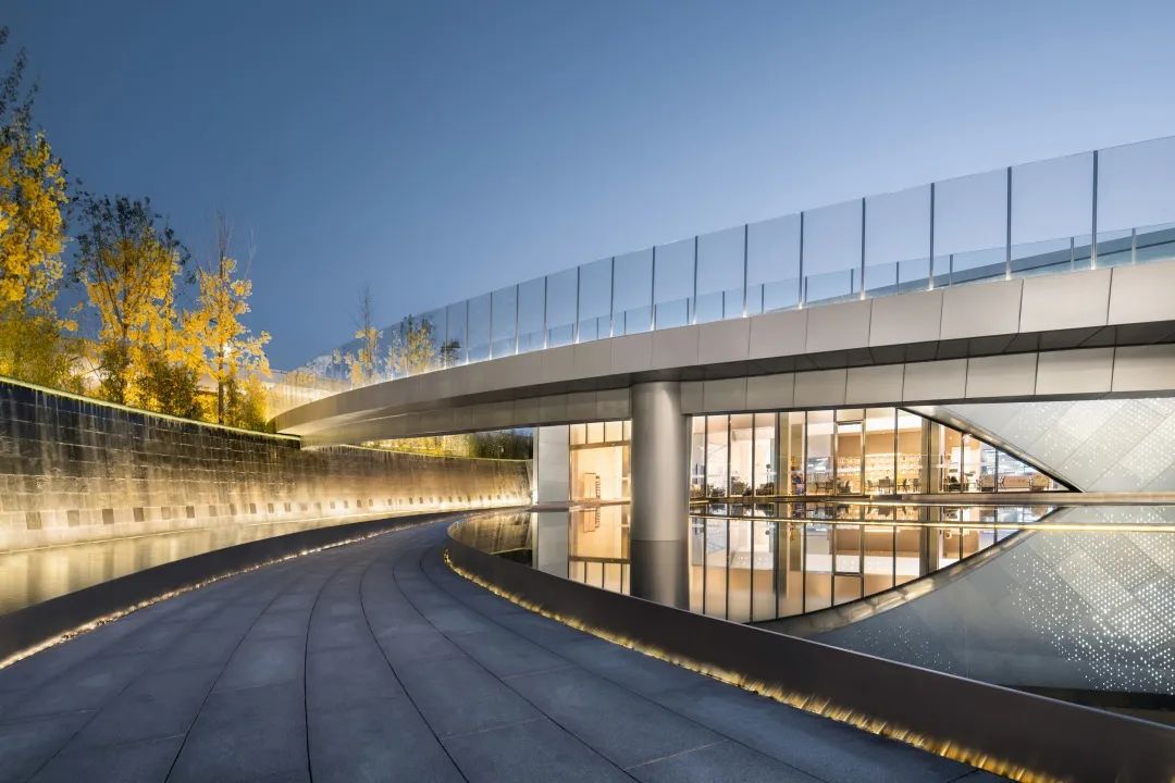 內(nèi)外一體:建筑猶如一個被交錯廊橋包裹著的玻璃展品,形成城市道路邊獨特的視覺標(biāo)識,展館內(nèi)的活動也成為展示的一部分,吸引人們走進場地,感受設(shè)計的敘事,瀏覽本身也成為展覽發(fā)生的一部分。