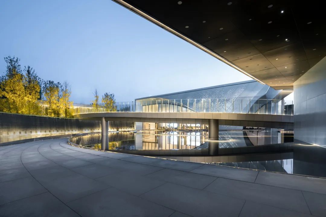 內(nèi)外一體:建筑猶如一個(gè)被交錯(cuò)廊橋包裹著的玻璃展品,形成城市道路邊獨(dú)特的視覺(jué)標(biāo)識(shí),展館內(nèi)的活動(dòng)也成為展示的一部分,吸引人們走進(jìn)場(chǎng)地,感受設(shè)計(jì)的敘事,瀏覽本身也成為展覽發(fā)生的一部分。
