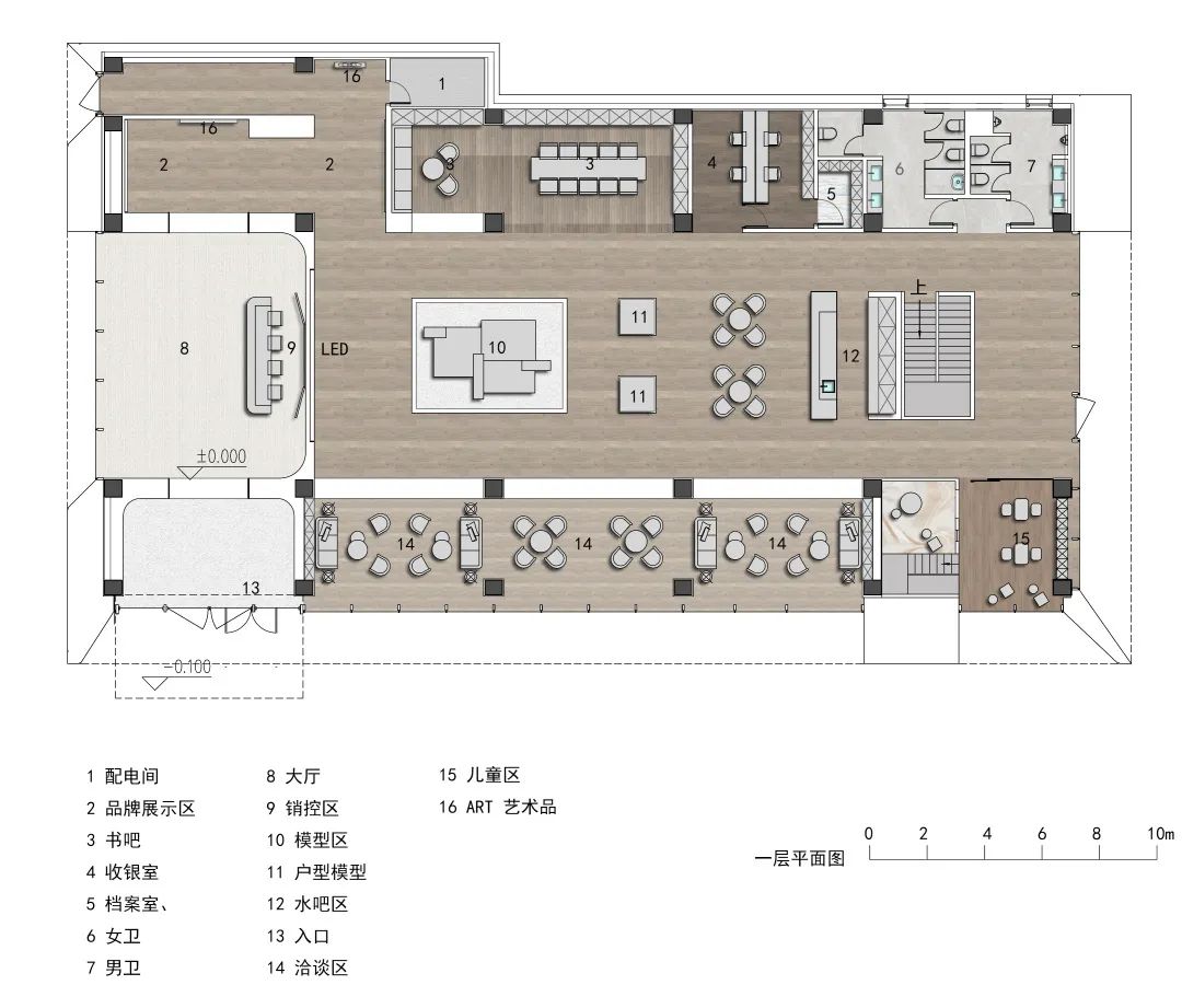 多空隙空間:挑高的回廊空間,橫向的尺度將空間的線性感完美的體現(xiàn)。半透的玻璃界定著空間,透漏著光影與空間,同時(shí)作為載體描繪著線性構(gòu)成的光的語(yǔ)言。充分利用灰空間實(shí)現(xiàn)建筑與景觀的柔和過(guò)渡,使兩者成為自然而有機(jī)的整體。