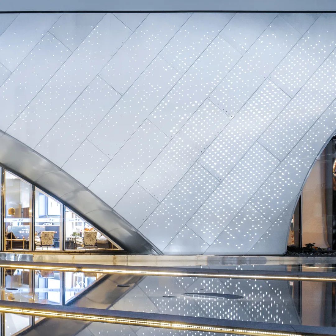 材料的構(gòu)造,細(xì)節(jié)的把控依然是我們?cè)O(shè)計(jì)追求的品質(zhì),鋁板表面的穿孔細(xì)心考究,結(jié)合燈光設(shè)計(jì)營(yíng)造出氣泡緩緩上升的感覺(jué),輕盈動(dòng)感。
