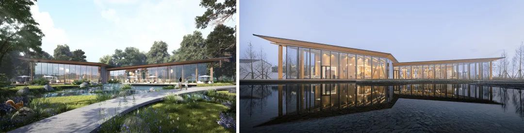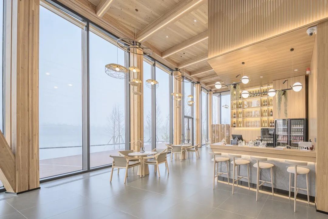 項(xiàng)目著重體現(xiàn)自然、田園、舒適的空間氛圍,重點(diǎn)詮釋木結(jié)構(gòu)空間完整性和體現(xiàn)木結(jié)構(gòu)梁柱的序列感,通過開敞的空間布局方式,營造出空間與建筑之間統(tǒng)一性,體現(xiàn)木結(jié)構(gòu)空間張力與自然美學(xué)氛圍。